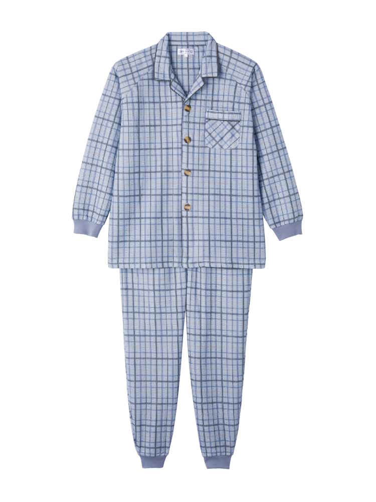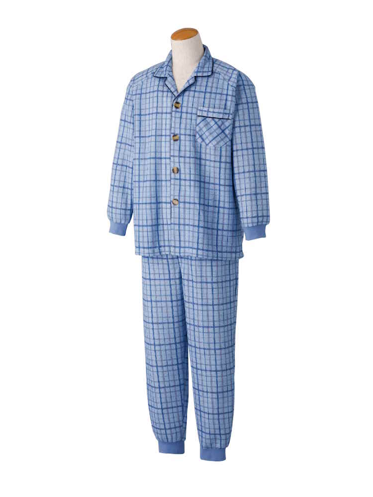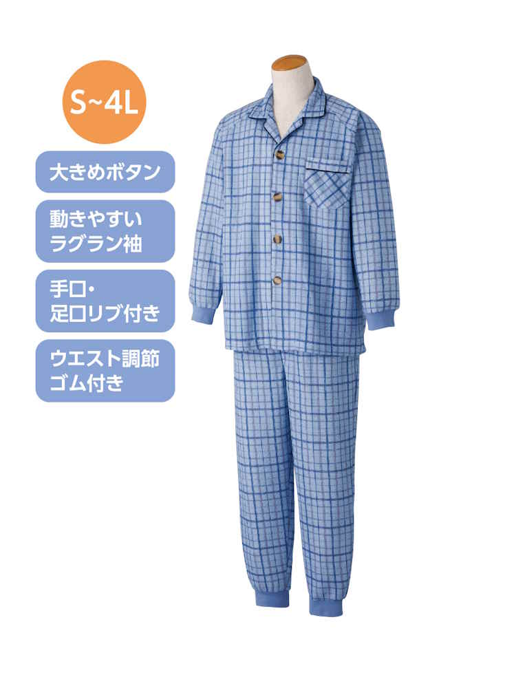 【前開き】【秋冬】大きめボタンキルトパジャマ 大きめサイズ/紳士用/メンズ/高齢者/シニア/動きやすいラグラン袖/ウエスト調整ゴム/ギフト/プレゼント 【CF】(ブルー)
