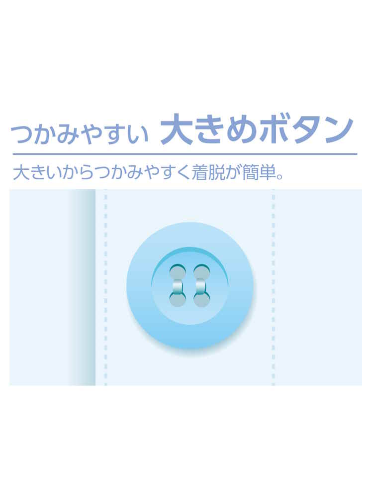 一般的なボタンに比べてつかみやすい大きめボタンを採用。この違いが着脱を簡単にしてくれます。