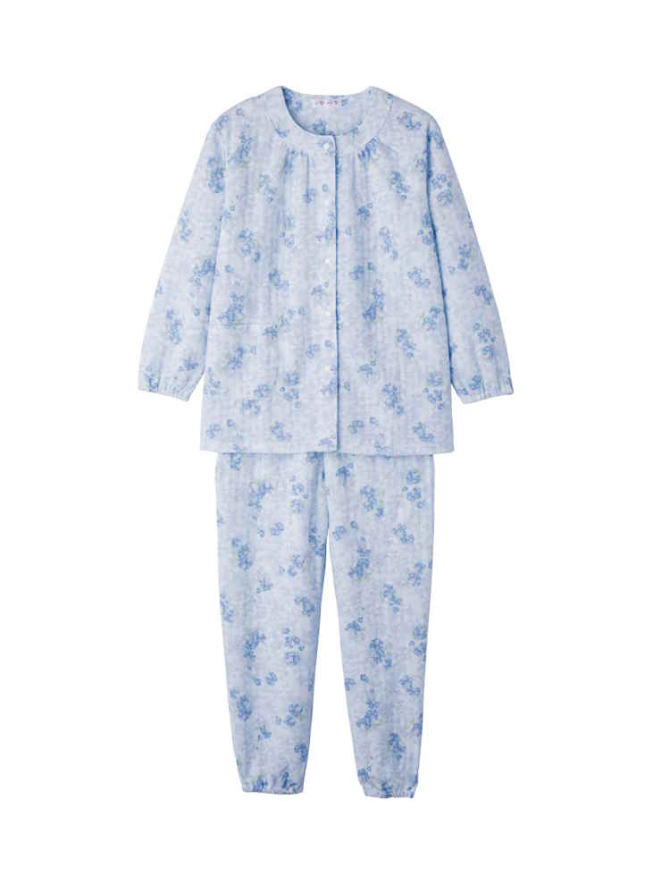 【前開き】【秋冬】大きめボタンキルトパジャマ4大きめサイズ/婦人用/レディース/シニア/高齢者/寝巻/名前記入欄付/ラグラン袖/ウエスト調整ゴム/洗濯機OK/ギフト/プレゼント
