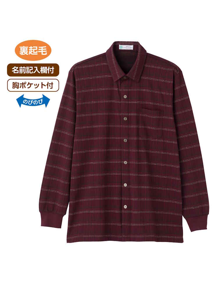 【前開き】【名前記入欄付】起毛ワンタッチテープシャツ1/紳士用/メンズ/高齢者/シニア/ワンタッチテープ/起毛/後ろ長め/秋冬/胸ポケット【CF】