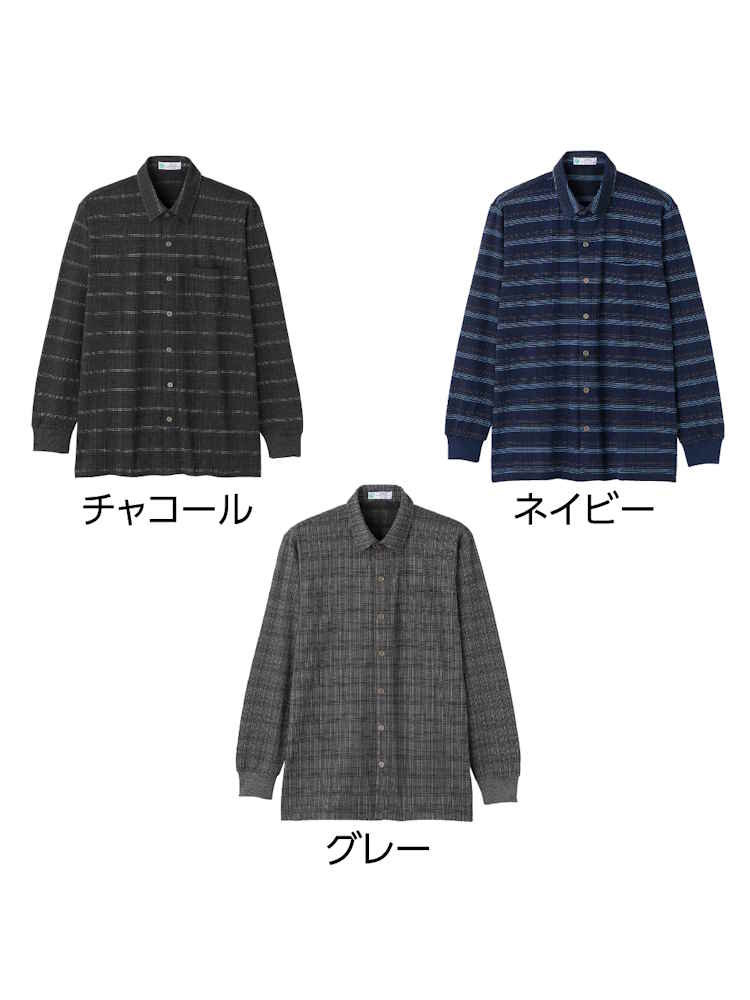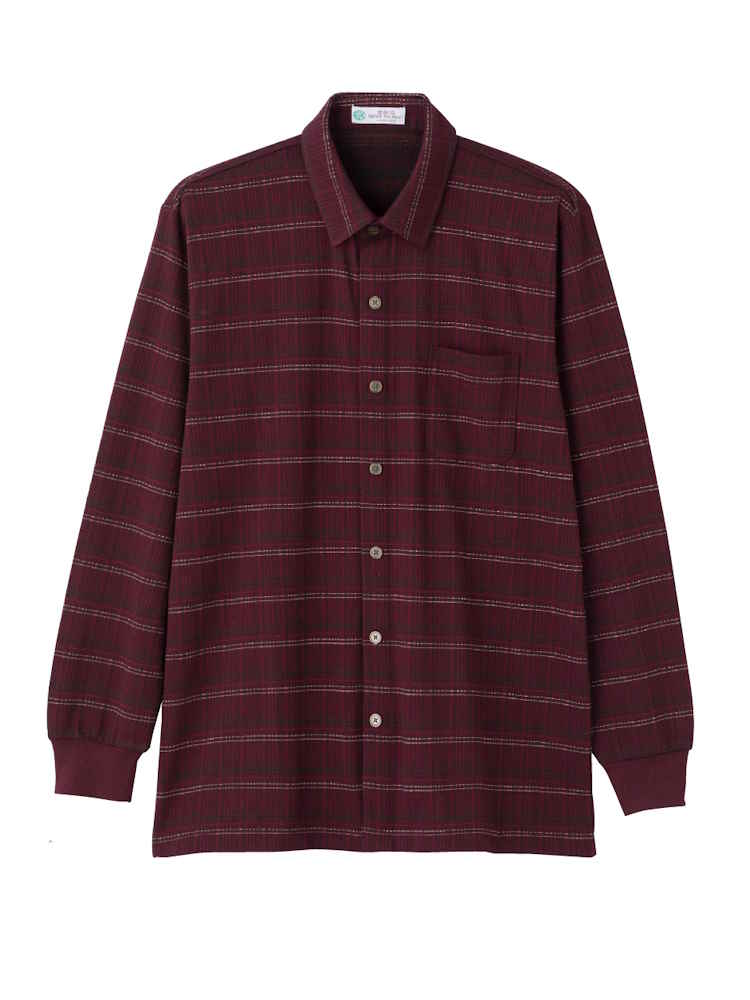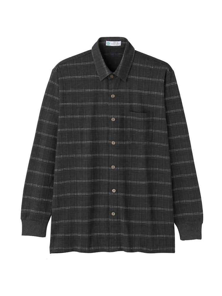 【前開き】【あったか】起毛ワンタッチテープシャツ2/紳士用/メンズ/高齢者/シニア/秋冬/名前記入欄付/施設/入居/後ろ長め/ギフト/プレゼント【CF】
