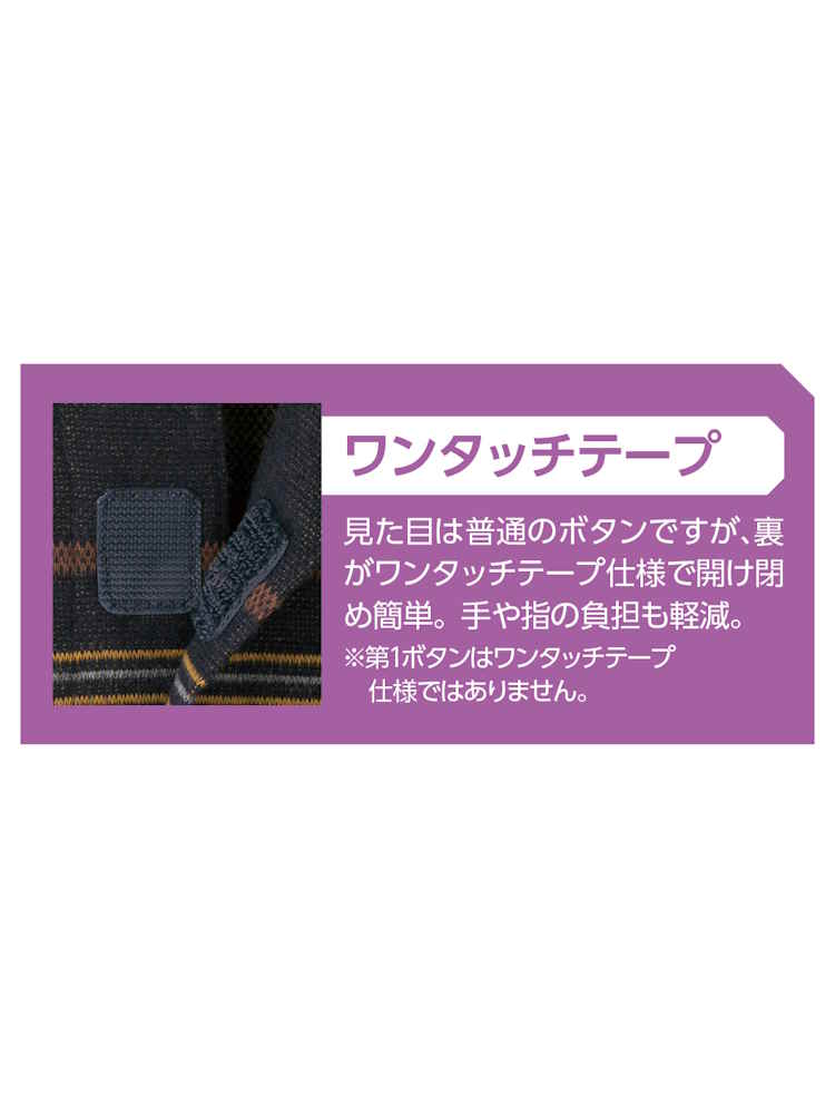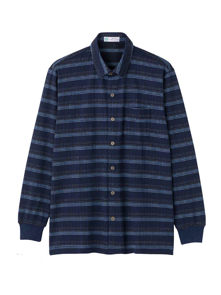 【前開き】【秋冬】裏起毛ワンタッチテープニットシャツ/紳士用/メンズ/高齢者/シニア/名前記入欄付/胸ポケット付/洗濯機OK/自宅で洗える/ギフト/プレゼント 【CF】(ネイビー)