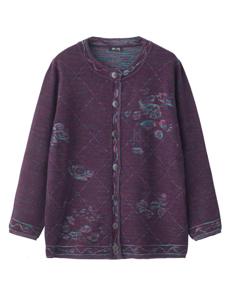 【前開き】【あったか】もちもち丸洗い花柄ジャカードカーディガン/婦人用/レディース/高齢者/シニア/自宅で洗える/洗濯機OK/ゆったり/名前記入欄付/おしゃれ/お出かけ/ギフト/プレゼント【CF】