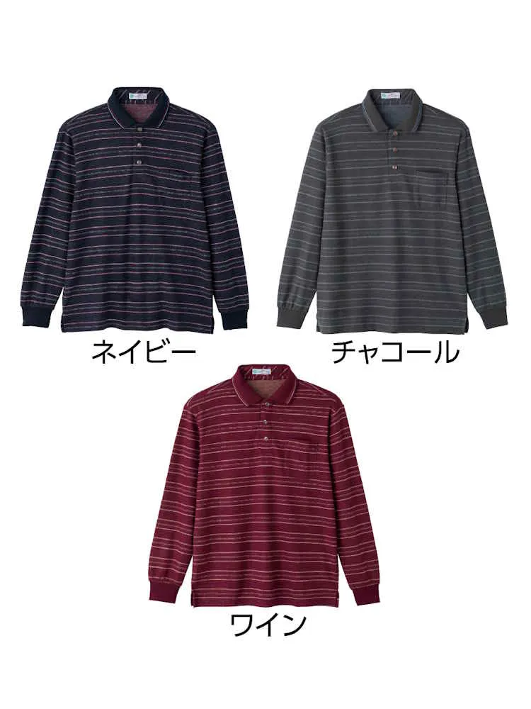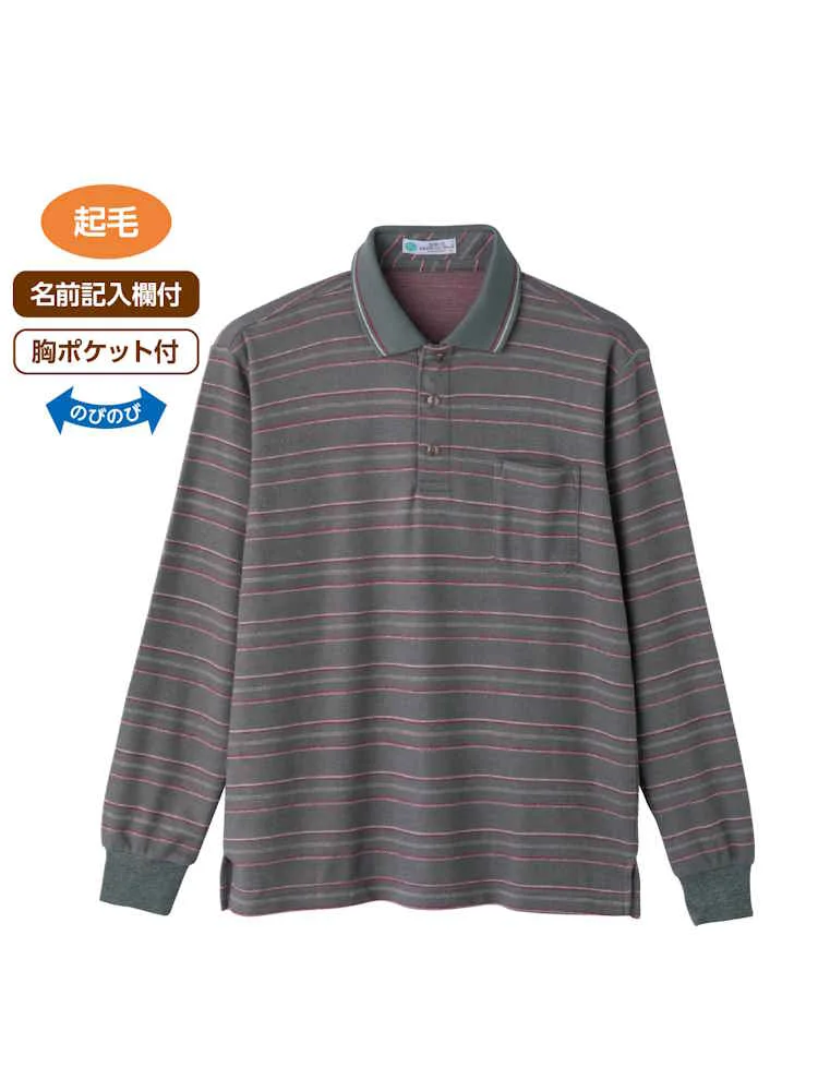 【秋冬】裏シャギーストレッチポロシャツ/紳士用/メンズ/シニア/高齢者/名前記入欄付/胸ポケット付/ギフト/プレゼント【CF】