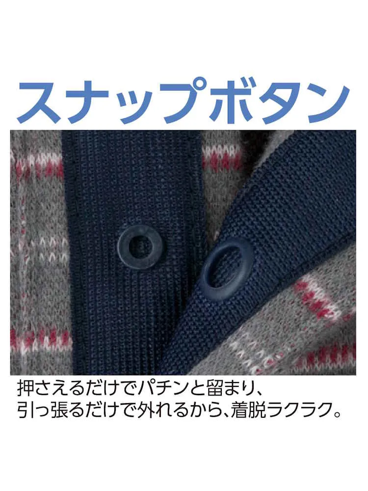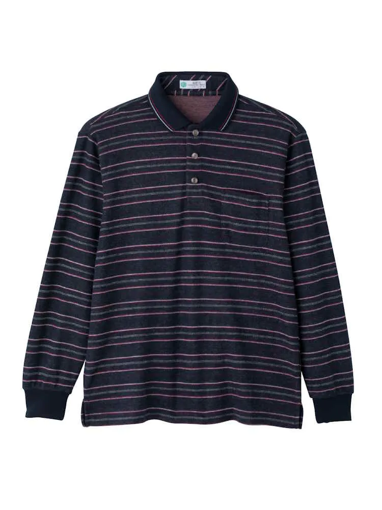 【秋冬】起毛ジャカードスナップ釦ポロシャツ/紳士用/メンズ/シニア/高齢者/スナップボタン/名前記入欄付/ギフト/プレゼント 【CF】(ネイビー)