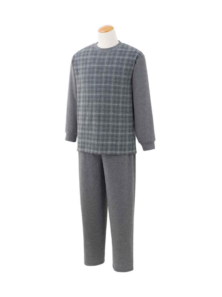 【前開き】【秋冬】裏起毛ワンタッチテープニットシャツ/紳士用/メンズ/高齢者/シニア/名前記入欄付/胸ポケット付/洗濯機OK/自宅で洗える/ギフト/プレゼント【CF】
