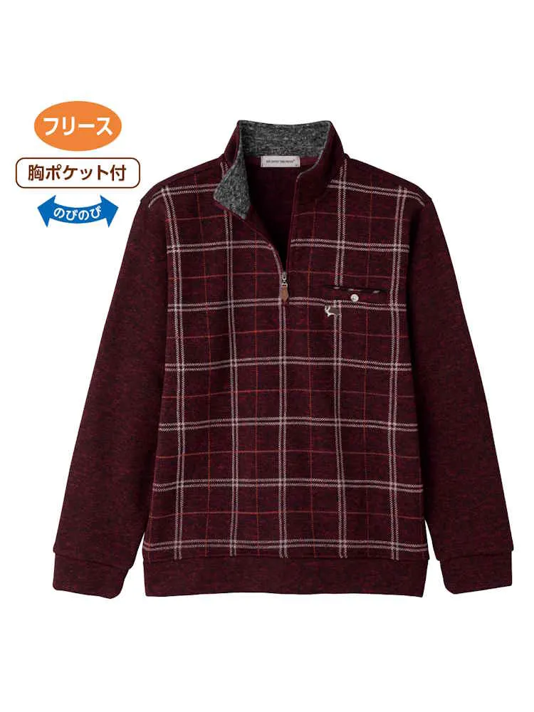 【秋冬】【あったか】ニットフリースハーフジップトレーナー/紳士用/メンズ/シニア/高齢者/胸ポケット/ギフト/プレゼント 【CF】(L.グレー)