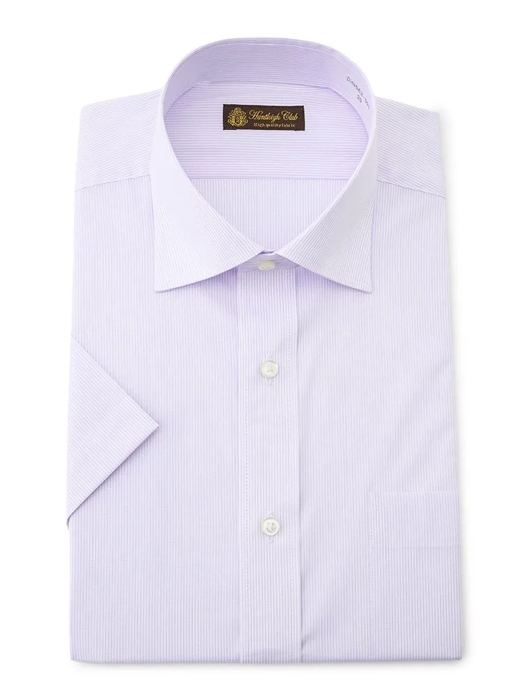 【形態安定】 半袖ワイシャツ セミワイド ストライプ ハントレークラブ 春夏(ラベンダー)