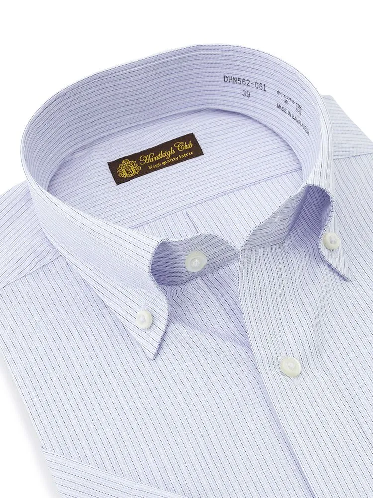 【形態安定】 半袖ワイシャツ ボタンダウン ストライプ ハントレークラブ 春夏(サックス)