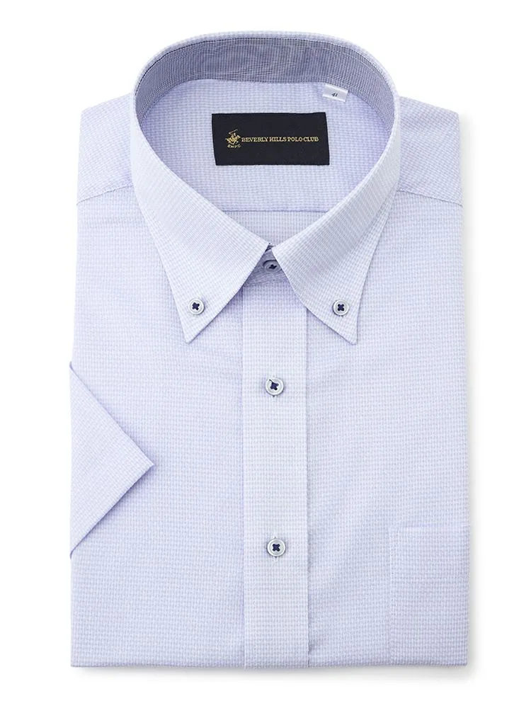【形態安定】半袖ワイシャツボタンダウン織柄無地ハントレークラブ春夏