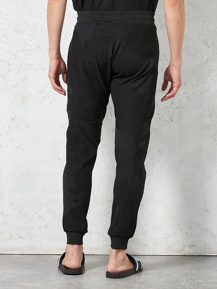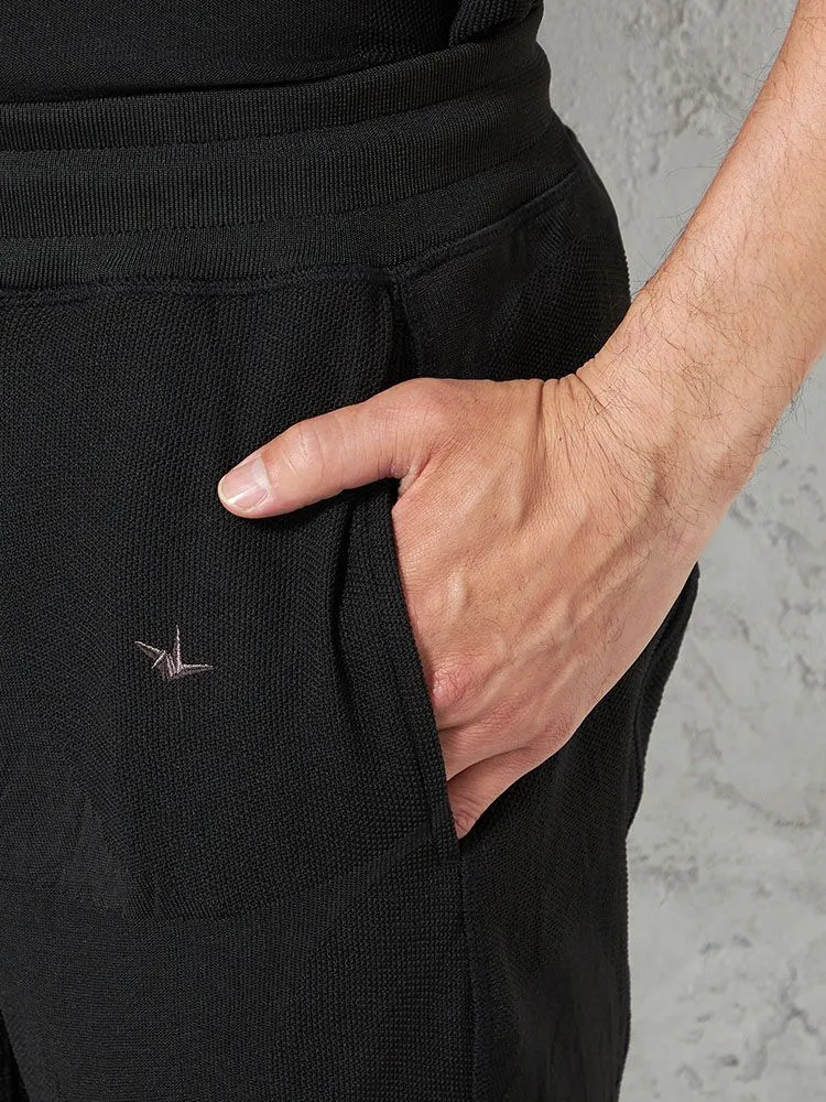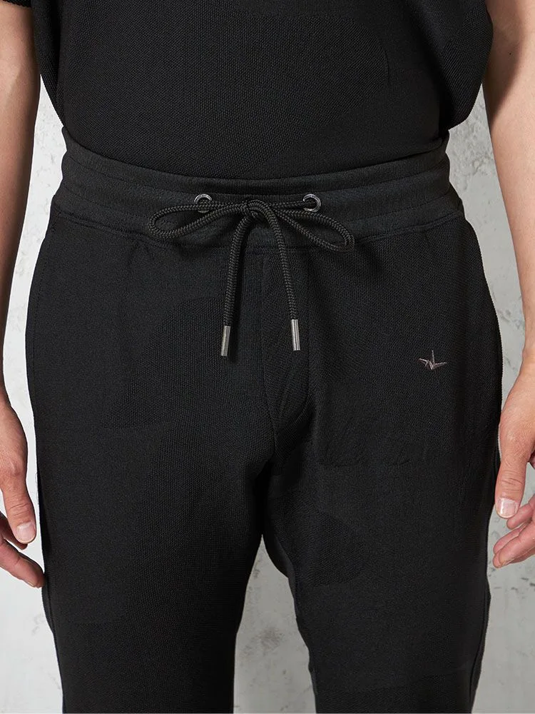 独特の表面感のあるストレッチニットで仕立てたロングパンツ。