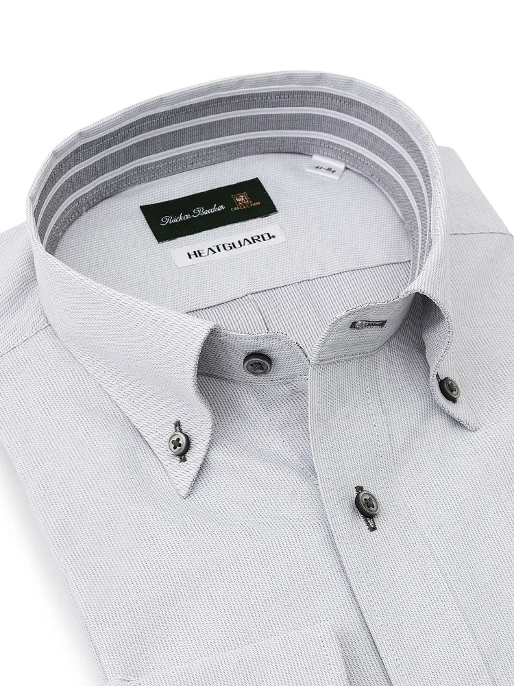 【遮熱&UVカット】長袖ワイシャツボタンダウン織柄無地リッケンバッカーヒートガード春夏