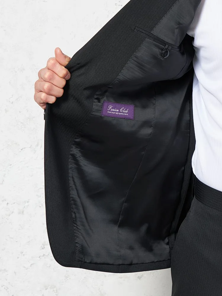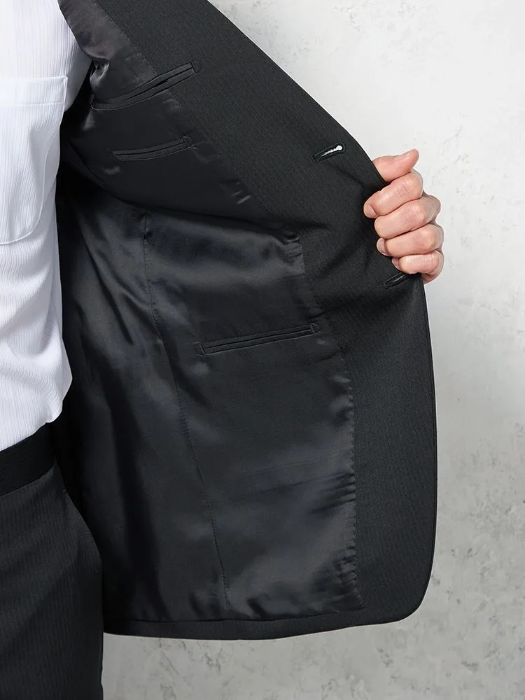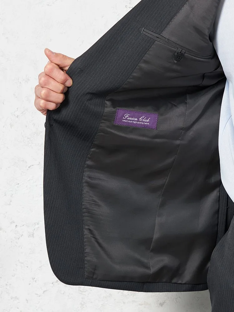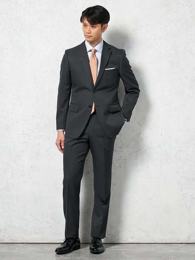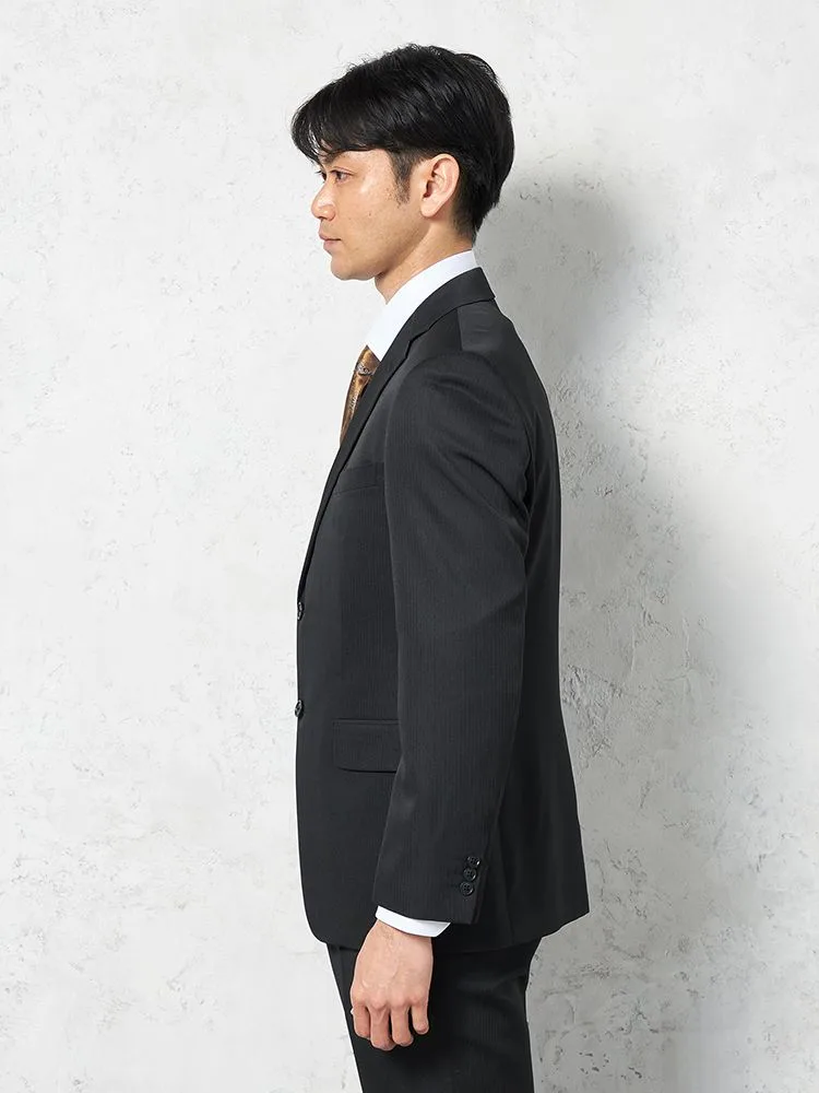 【上下ウォッシャブル】スーツ 2つボタン イージーケア ストライプ フュージョンクラブ 通年(ブラック)
