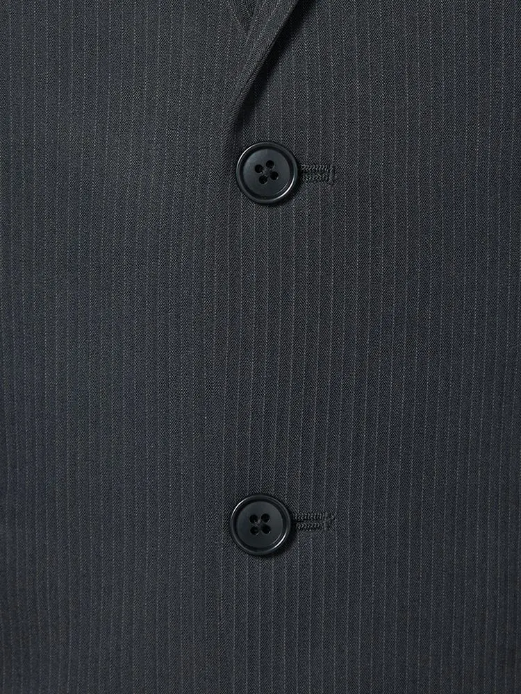 【ウォッシャブル】スリーピーススーツ2つボタンウール混ノータックストライプnero