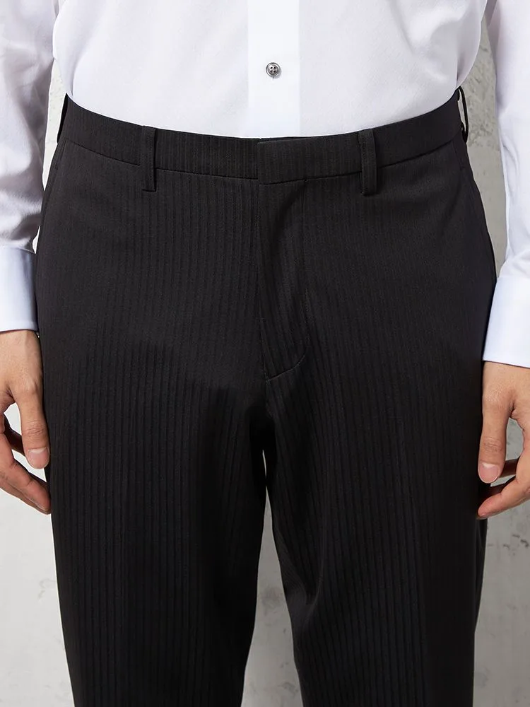 【i-Pants-アイパンツ-】バイオセンサー生地使用【スリム】ノータックシャドウストライプスラックスnero