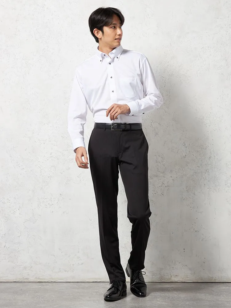 【i-Pants-アイパンツ-】バイオセンサー生地使用ウォッシャブルノータックストライプスラックスnero