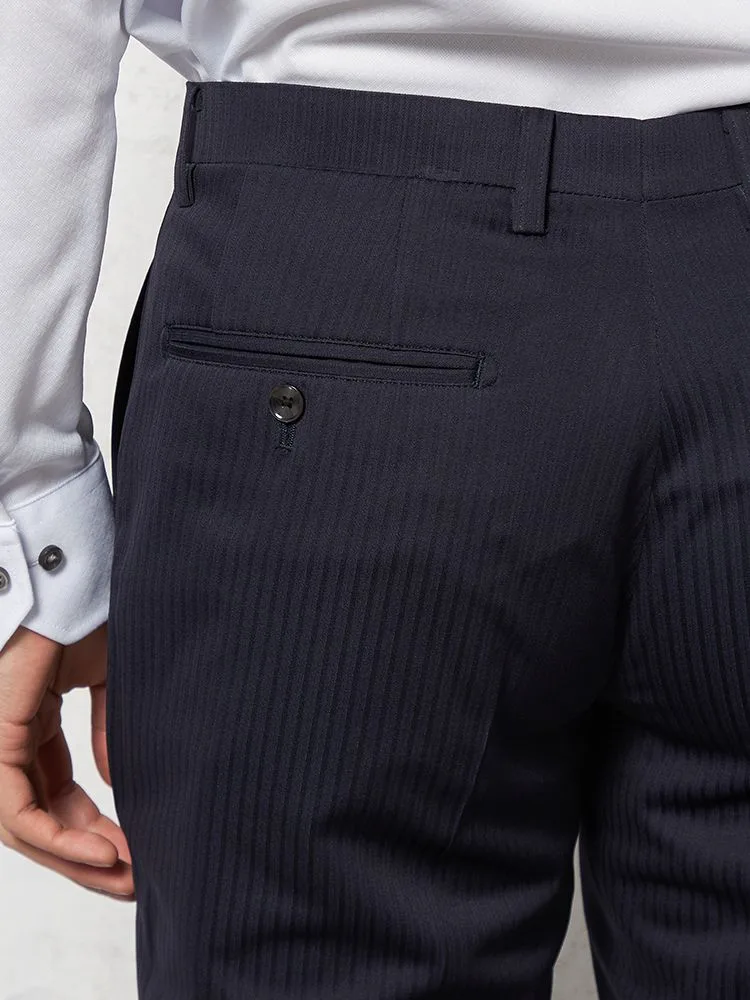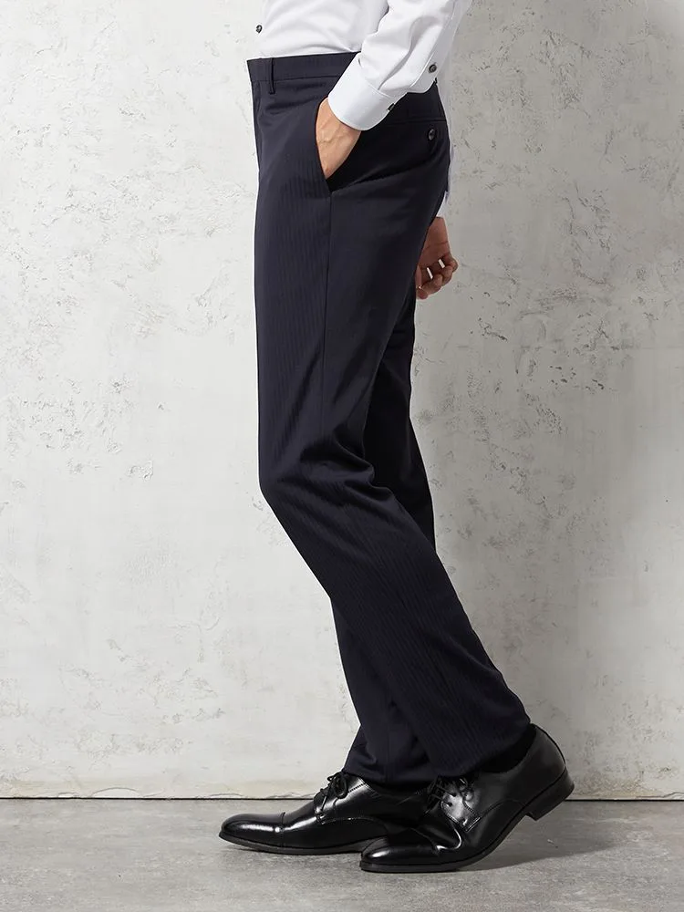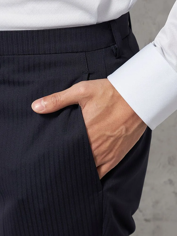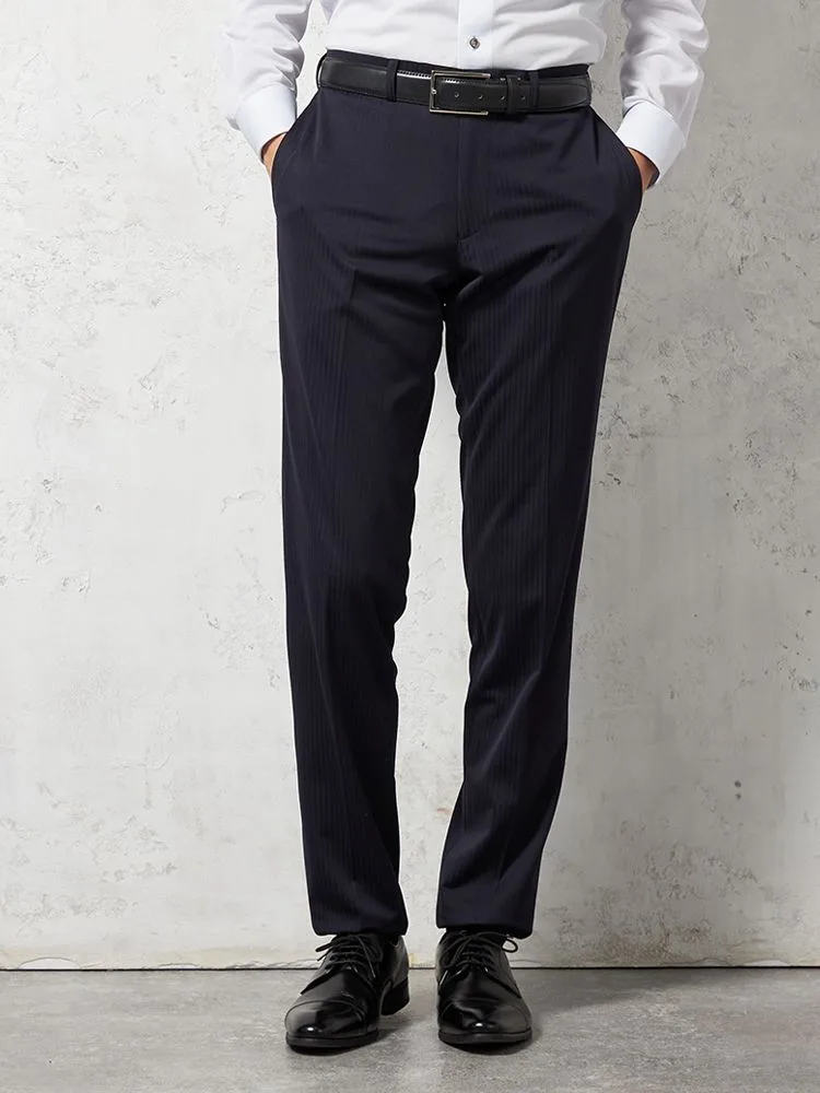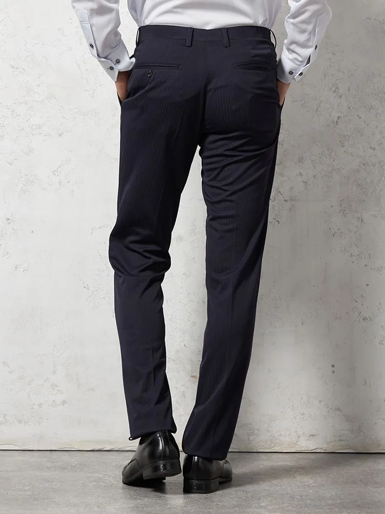 【i-Pants-アイパンツ-】バイオセンサー生地使用【スリムタイプ】接触冷感 高通気 ノータック シャドウストライプ スラックス nero 春夏(ネイビー)