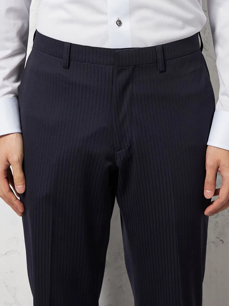 【i-Pants-アイパンツ-】バイオセンサー生地使用【レギュラー】ノータックストライプスラックスリッケンバッカー