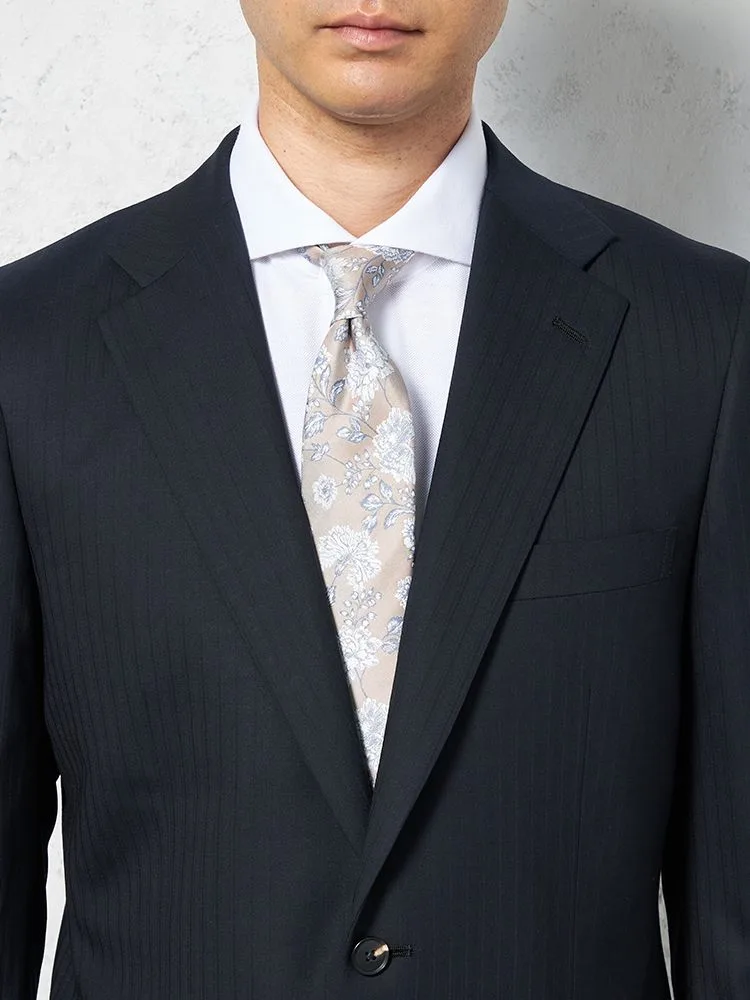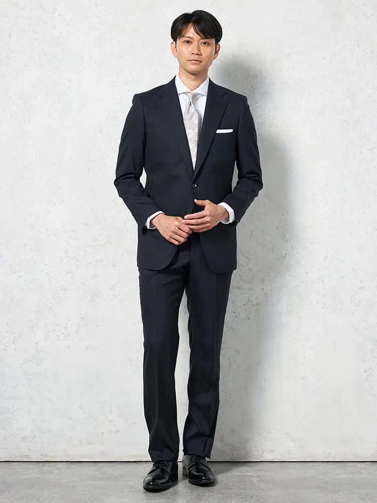 スタイリッシュかつ品良く着用できるシャドーストライプのスーツ。