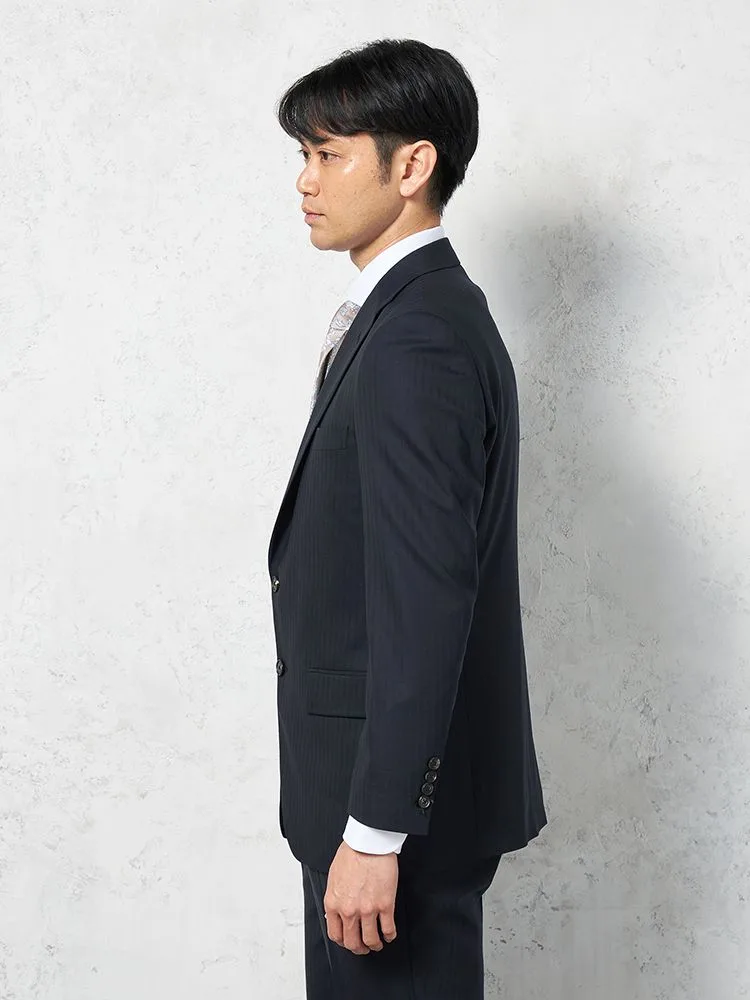 切り込みが1本のセンターベントデザインです。細身でスッキリとしたシルエットが特徴で、快適な着心地を提供します