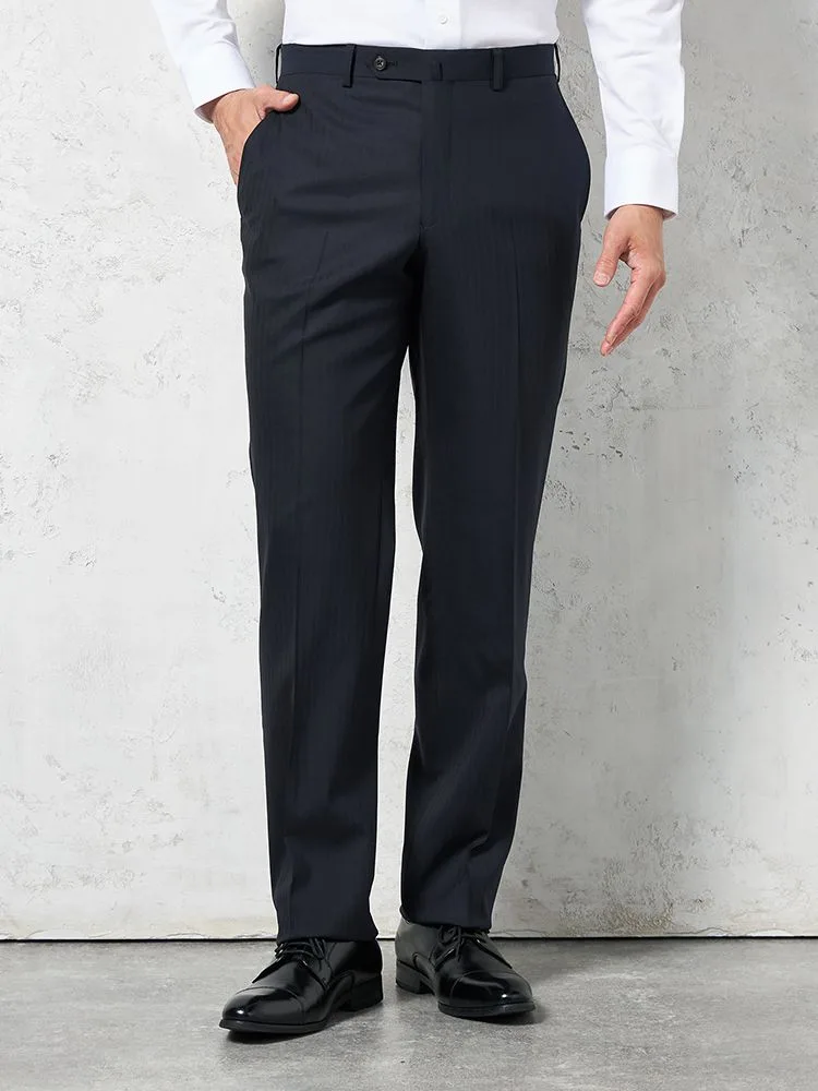 パンツの腰回りに生地の折り込みがなく、スッキリとしたシルエットを実現します。シンプルで洗練された印象を与え、すっきりとした着こなしが可能です。