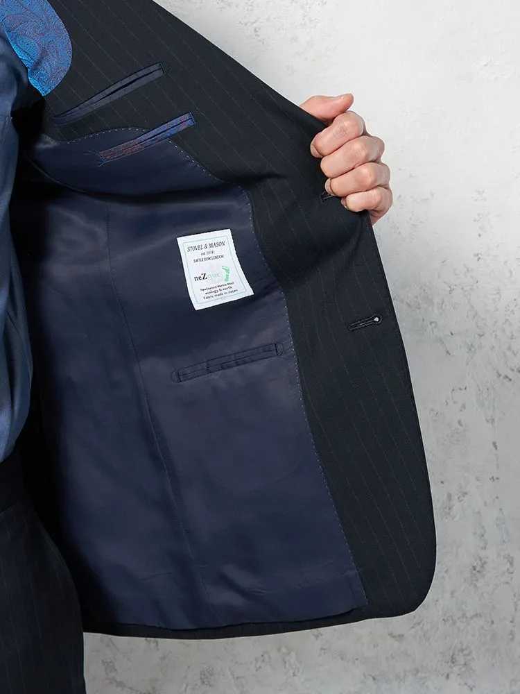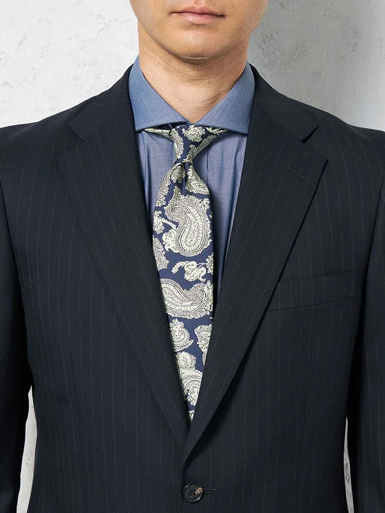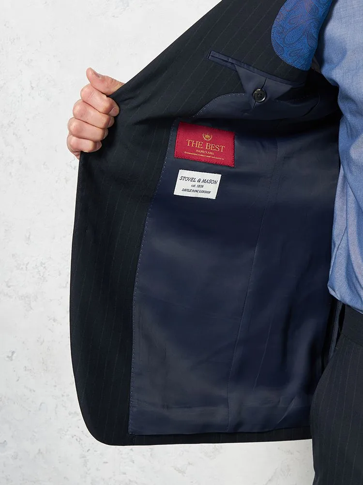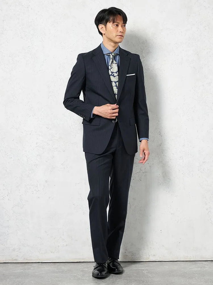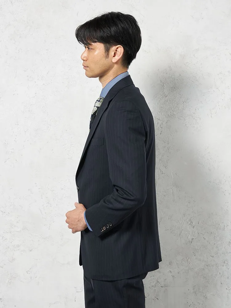 【ウール100%】スーツ2つボタン尾州生地ネイビーシャドウストライプSTOVEL&MASON