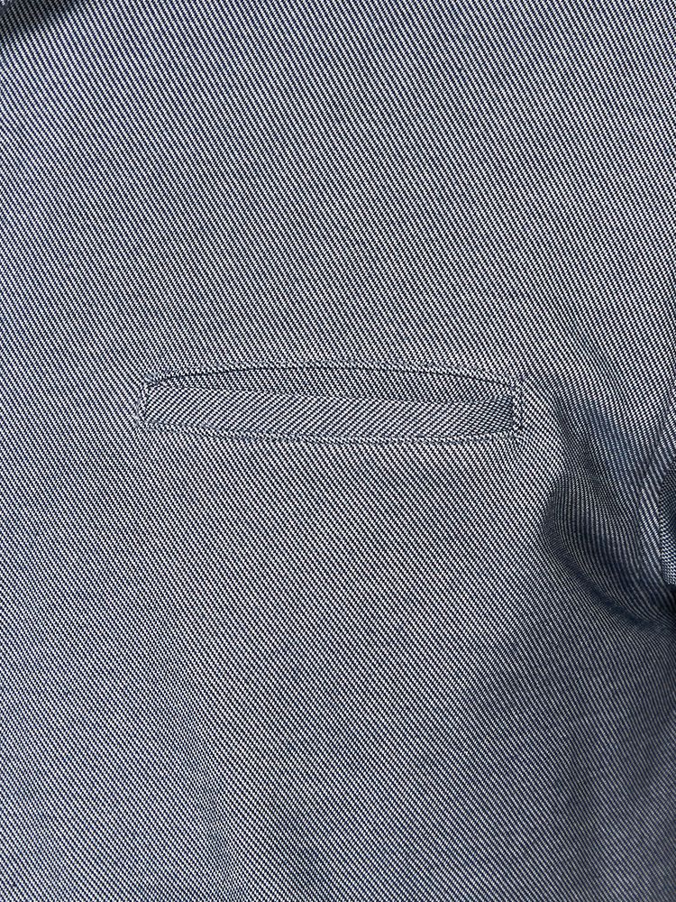 また、デニム調のキレイな目面の生地で作っているので、オフィスでのビジネスウェアや休日のカジュアルコーデまで幅広く使える1着です。