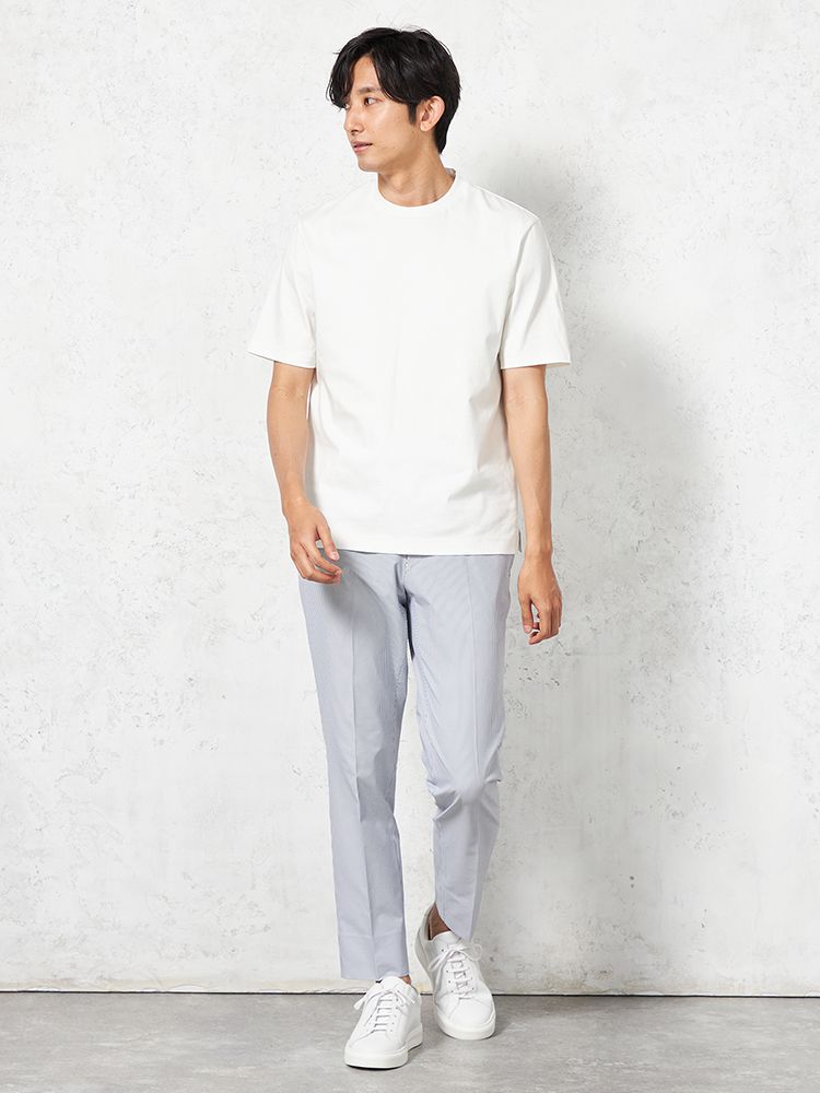 綿100%の素材で、肌に優しく、通気性も抜群。快適に着用できるだけでなく、デイリーで使いやすい素材です。