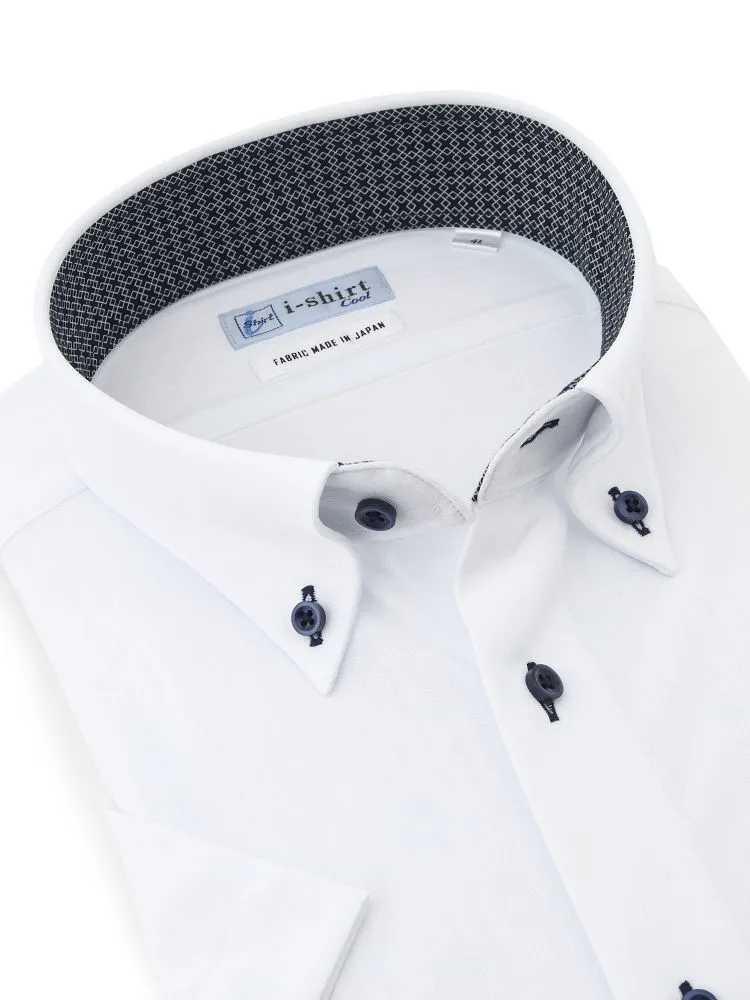 【即納】WEB限定【完全ノーアイロン】半袖アイシャツボタンダウンストレッチ織柄無地i-shirt春夏
