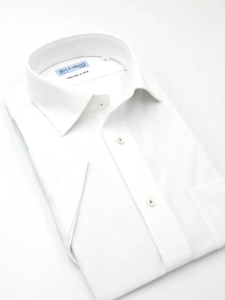 【即納】WEB限定【完全ノーアイロン】半袖 アイシャツ セミワイド ストレッチ 織柄無地 i-shirt 春夏