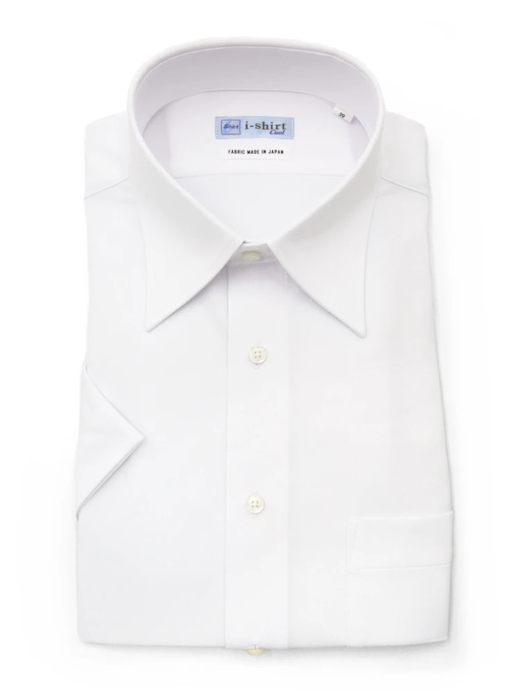【完全ノーアイロン】半袖アイシャツセミワイド白無地冷感UV加工無地ワイシャツi-shirt春夏