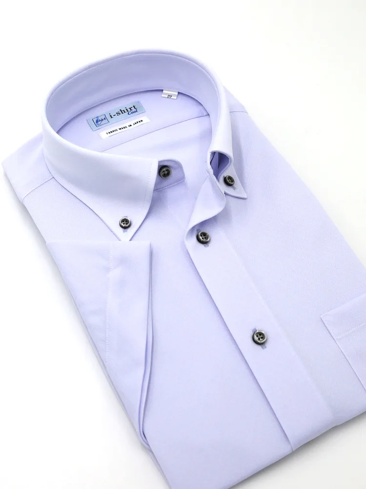 【即納】WEB限定【完全ノーアイロン】半袖アイシャツボタンダウンストレッチ織柄無地i-shirt春夏