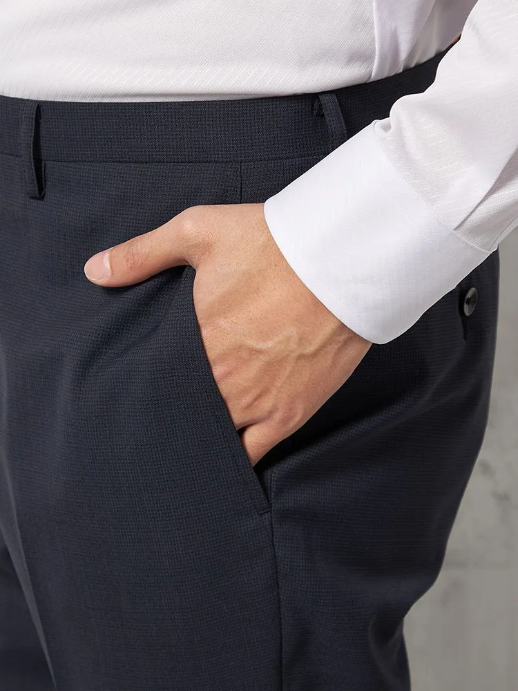 【ウォッシャブル】パンツスラックスノータックスリムマイクロチェックnero