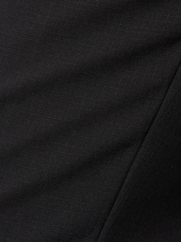 パンツの腰回りに生地の折り込みがなく、スッキリとしたシルエットを実現します。シンプルで洗練された印象を与え、すっきりとした着こなしが可能です。