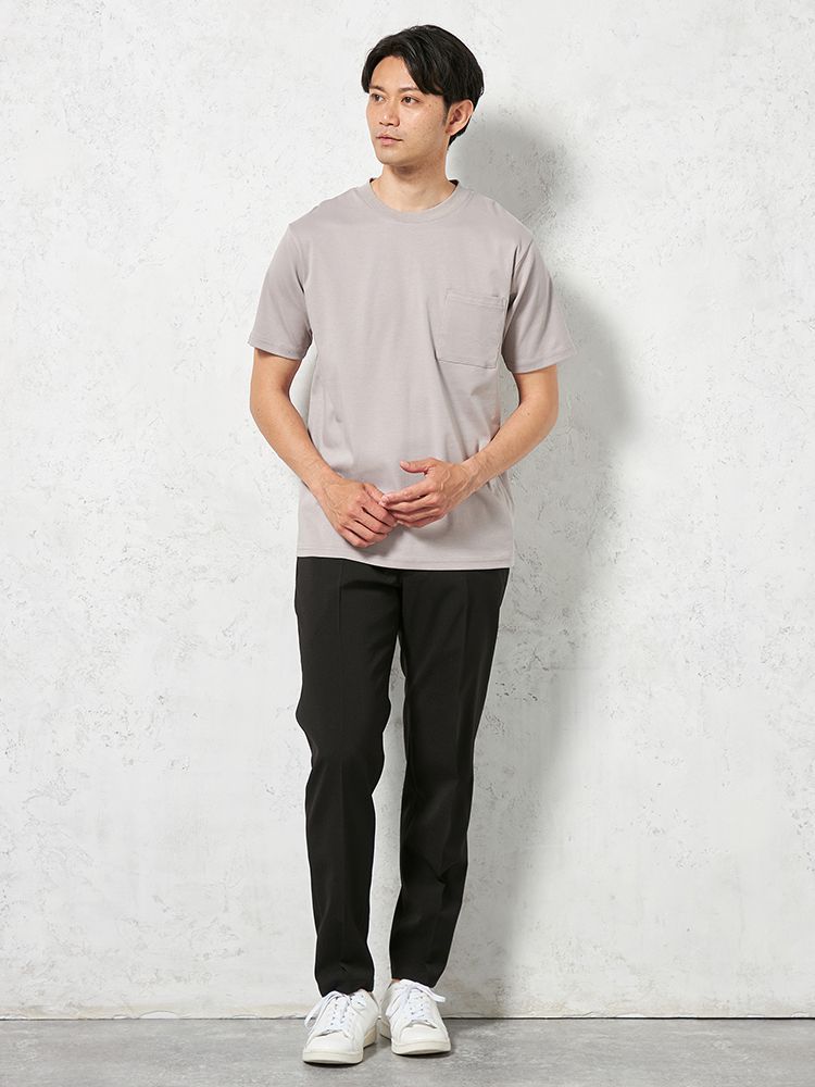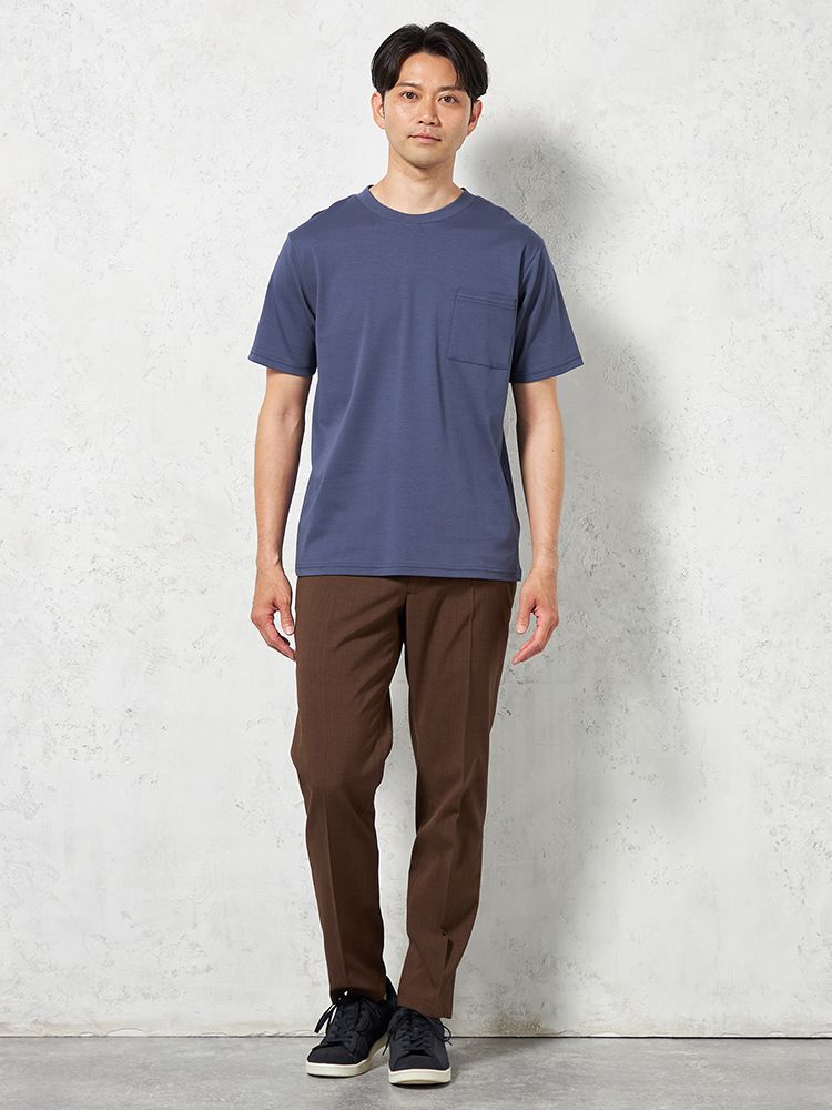 綿100%の素材で、肌に優しく、通気性も抜群。快適に着用できるだけでなく、デイリーで使いやすい素材です。