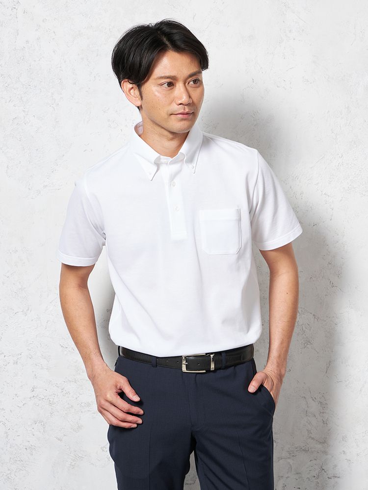 【接触冷感】半袖ビズポロシャツボタンダウン無地TOKYORUN春夏