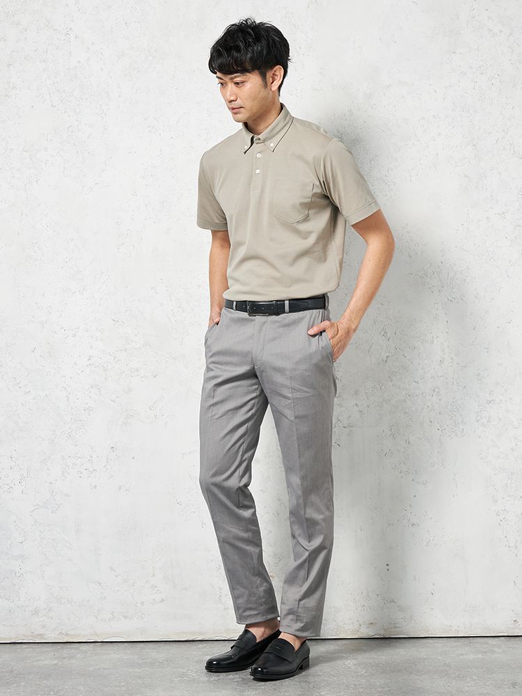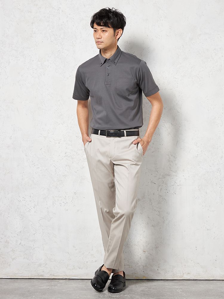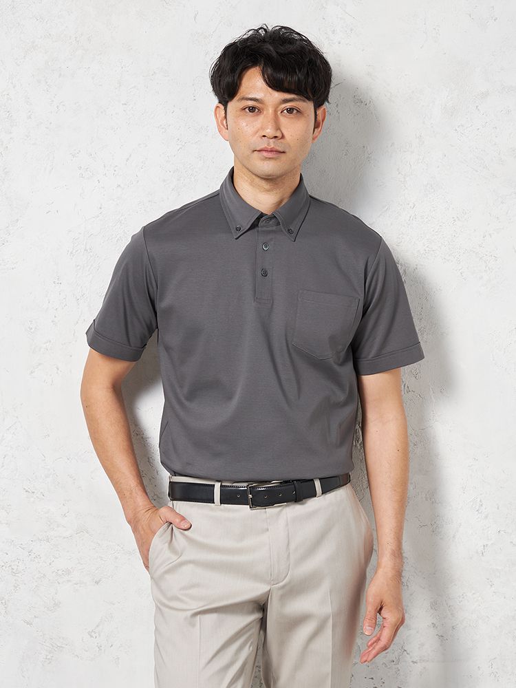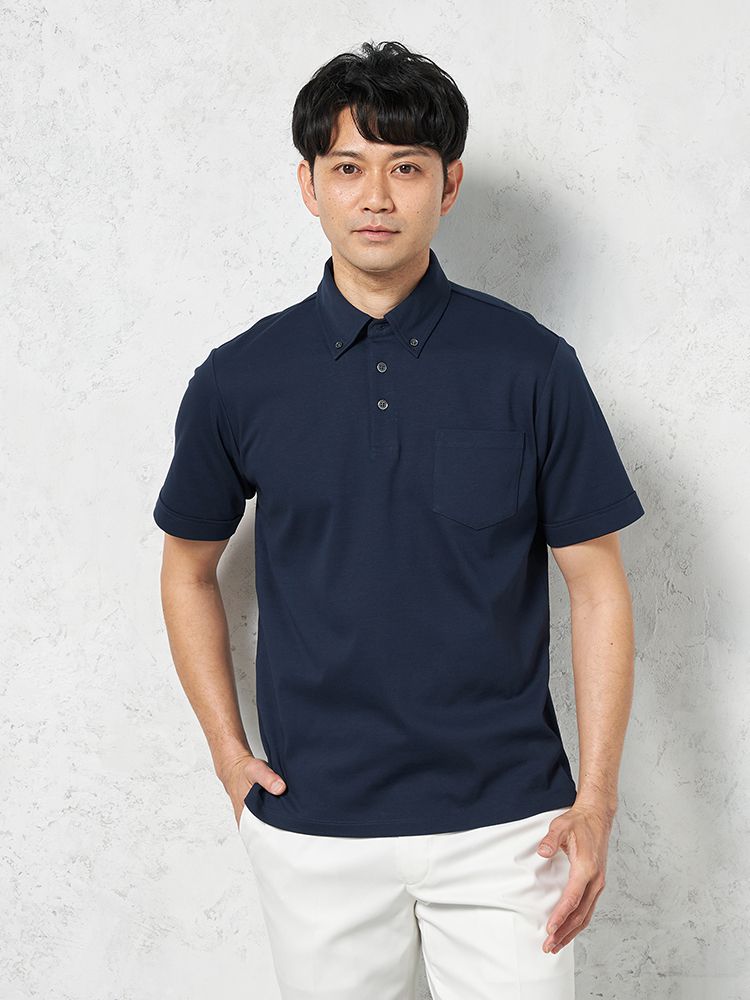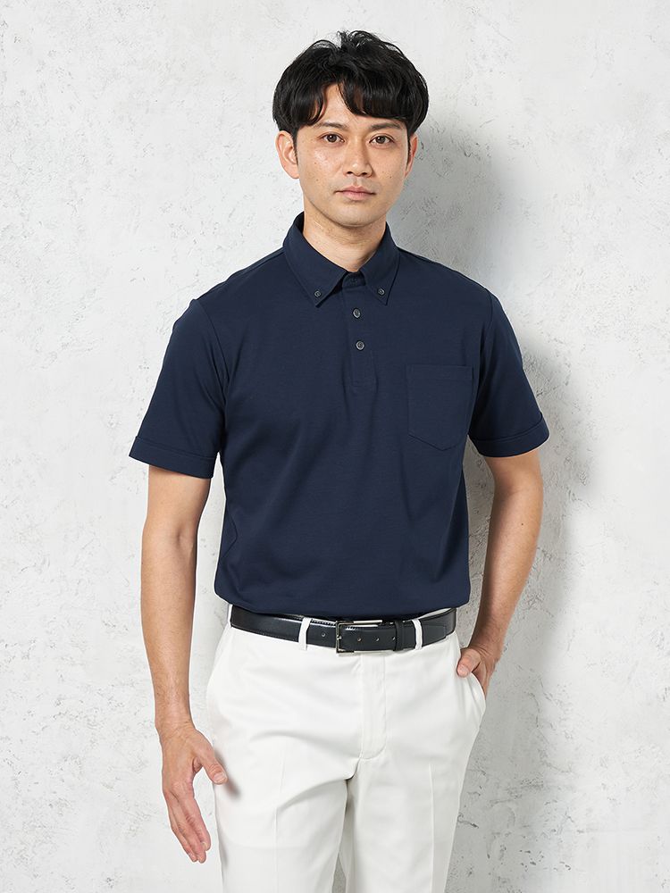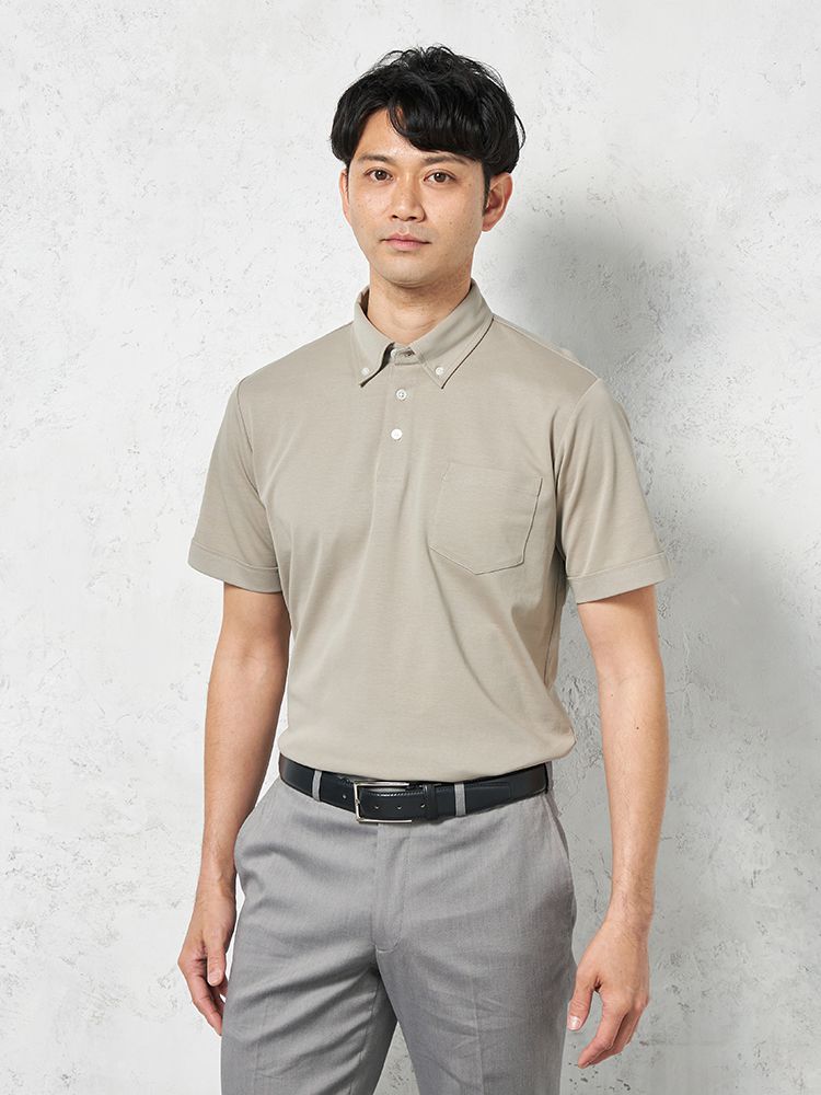 【接触冷感】半袖ビズポロシャツボタンダウン無地TOKYORUN春夏