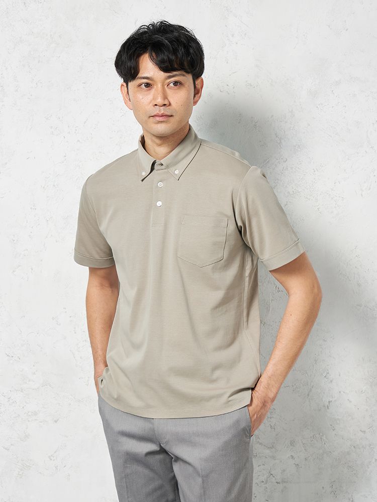 【汗じみ防止】 半袖 ビズポロシャツ ボタンダウン 無地 TOKYO RUN 春夏(ベージュ)