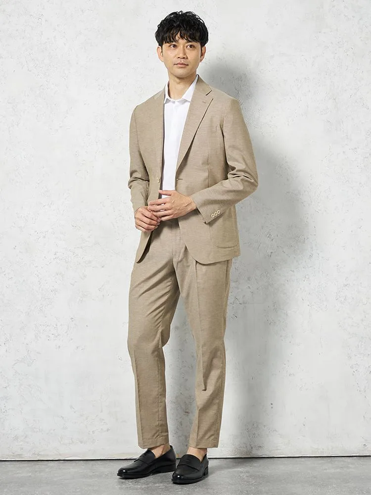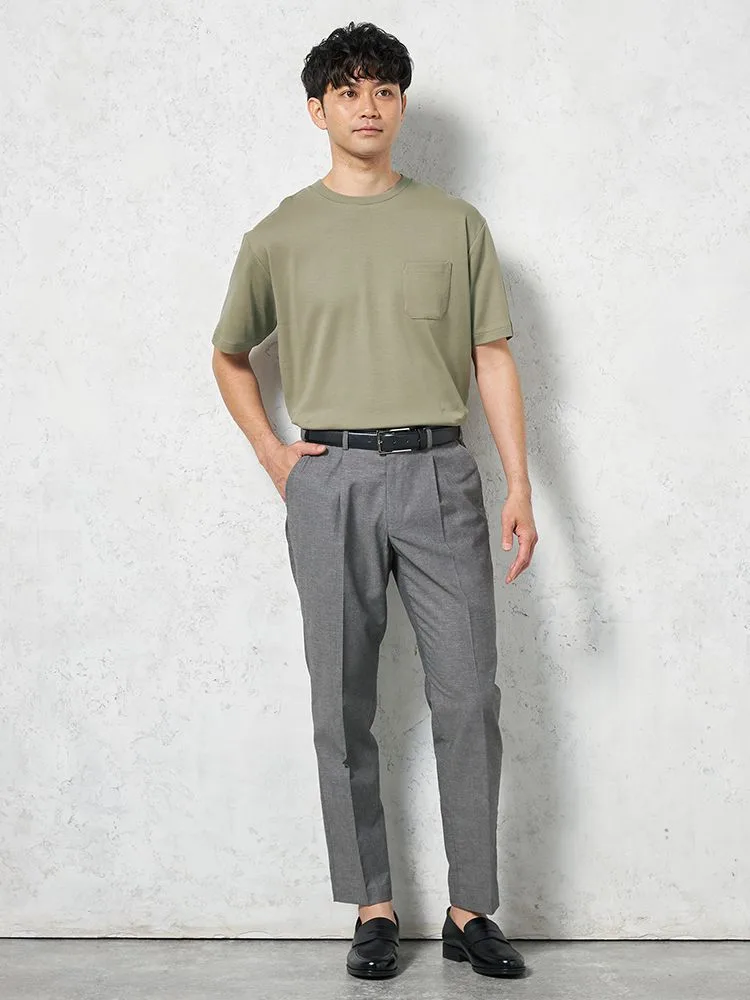 鮮度の高い着こなしが叶う、すっきりとしたテーパードシルエットのセットアップパンツ。