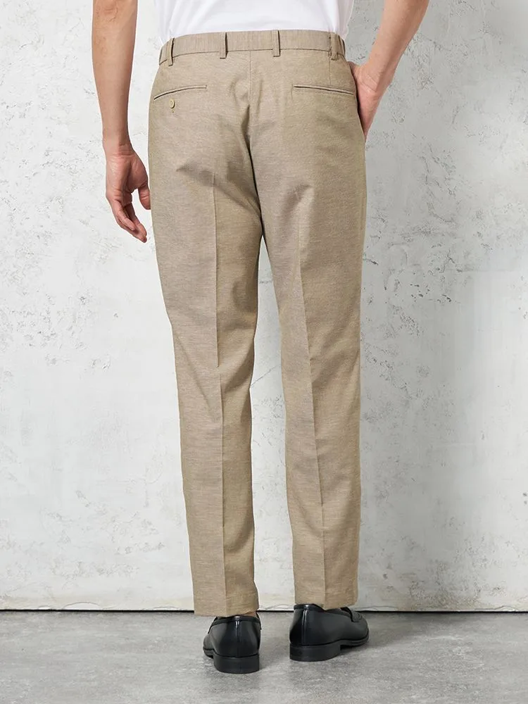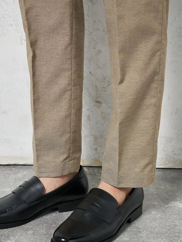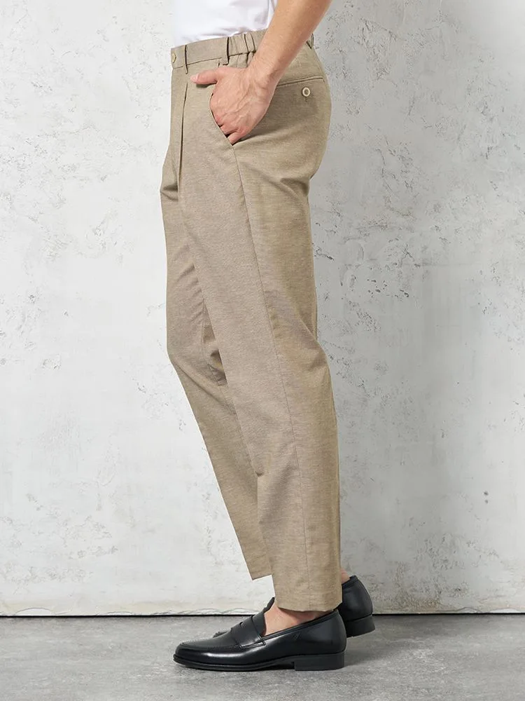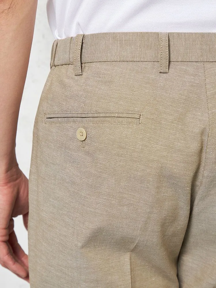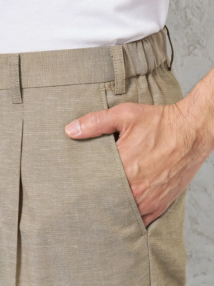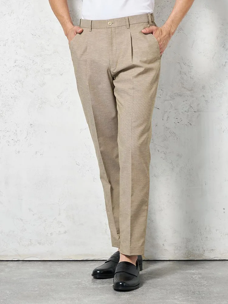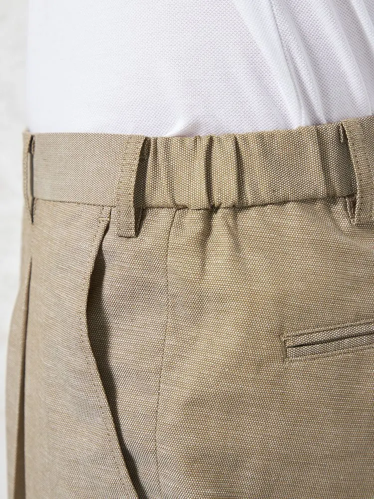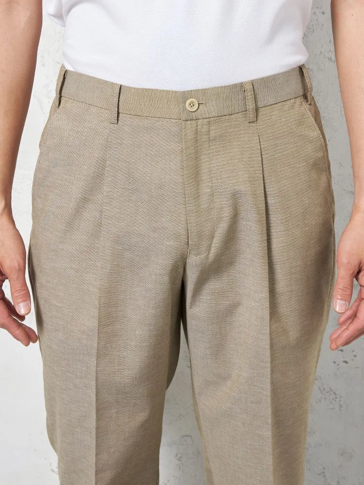 【綿麻混素材】パンツ ワンタック ストレッチ【セットアップ商品有】 リッケンバッカーブラック 春夏(ベージュ)