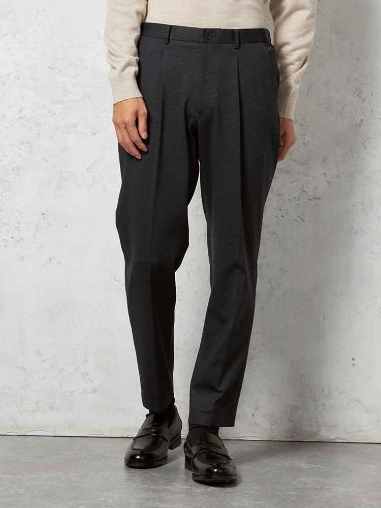 【ウォッシャブル】パンツスラックスワンタック【i-Pants-アイパンツ-】尾州麻混ニット素材ストレッチ春夏