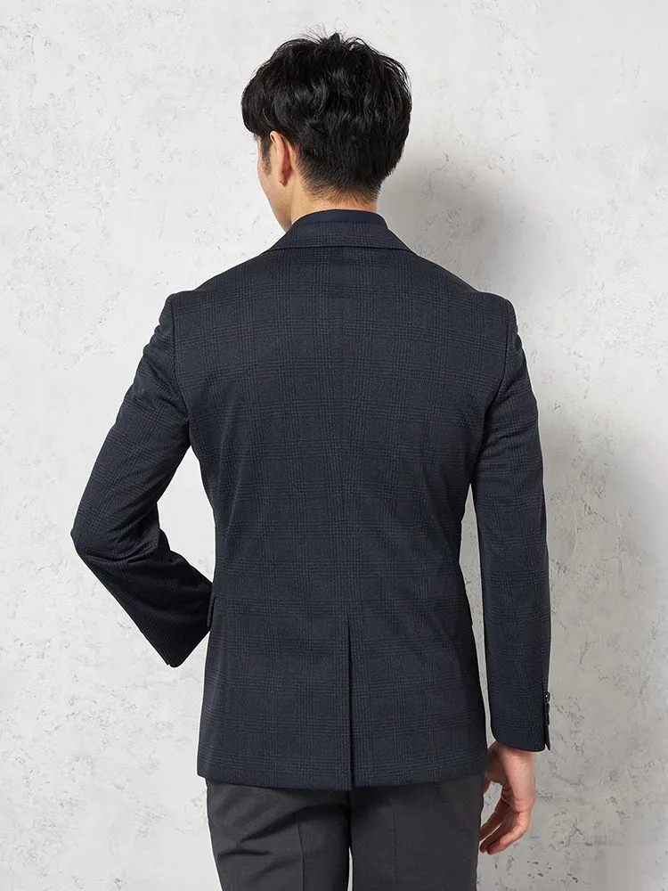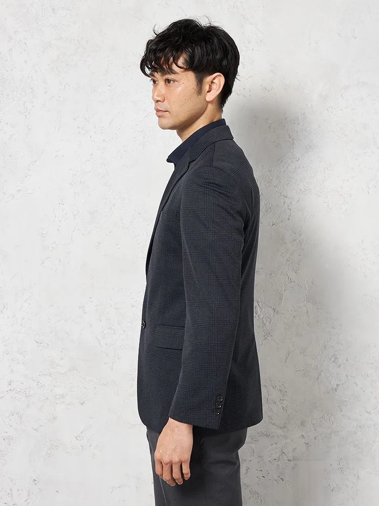 【i-Jacket-アイジャケット-】ジャケット2つボタンウォッシャブルリサイクルニット素材チェック秋冬