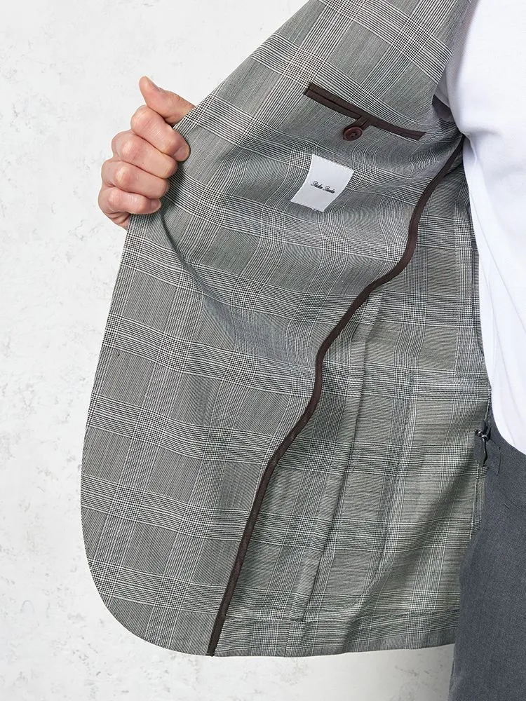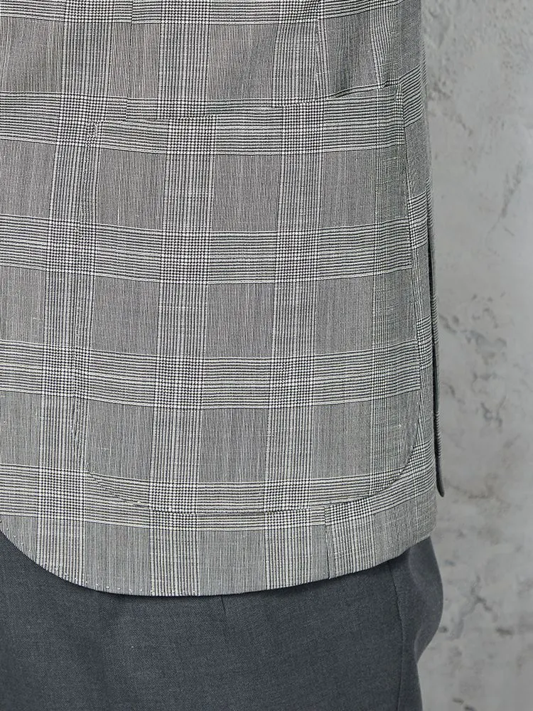 【ウール・リネン混】ジャケット 2つボタン 【イタリアREDA社製】軽量 チェック 春夏