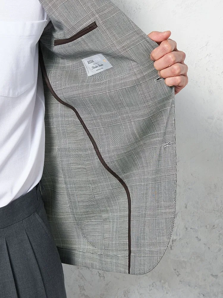 【ウール100%】ジャケット2つボタン【REDA】イタリアインポート素材軽量仕立てチェックグレーRUCKENBACCHAR秋冬