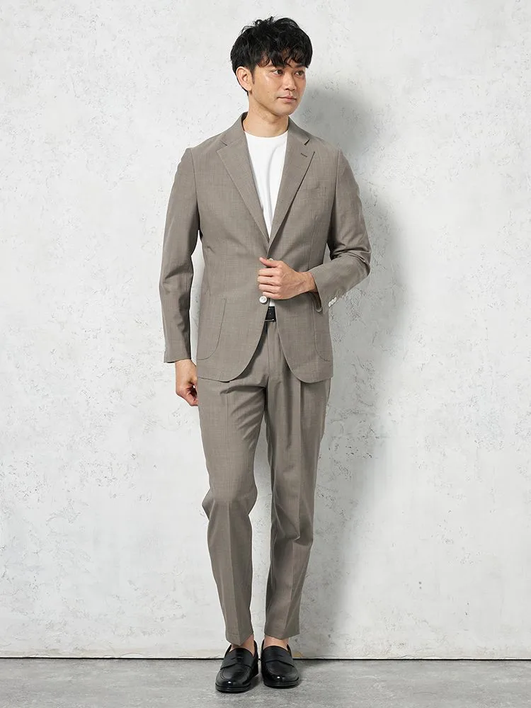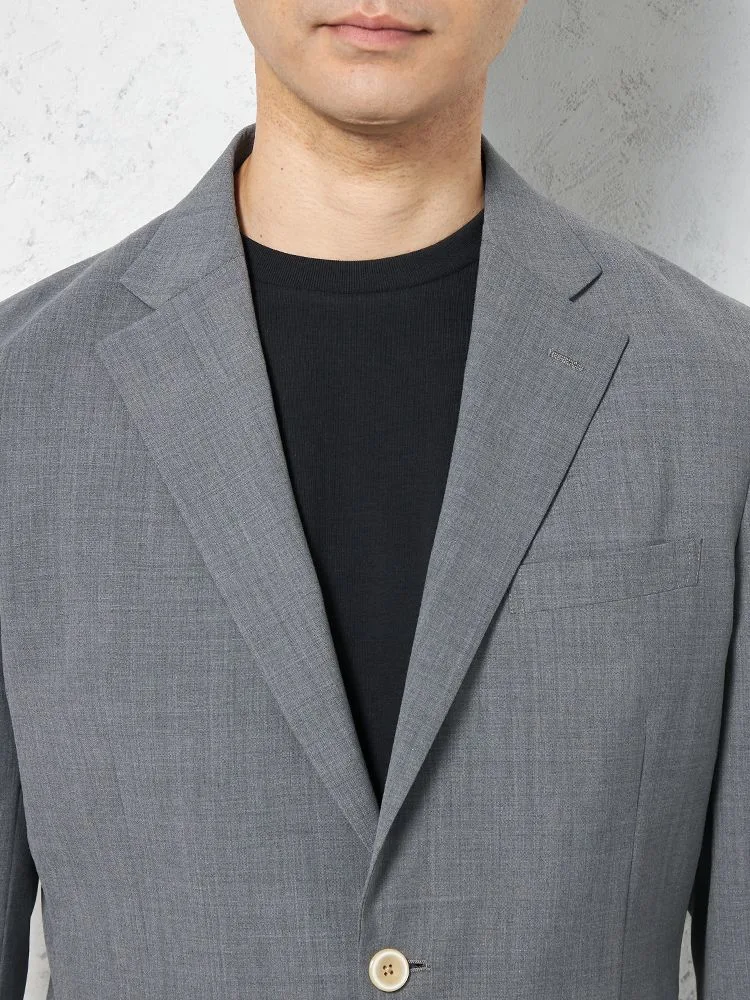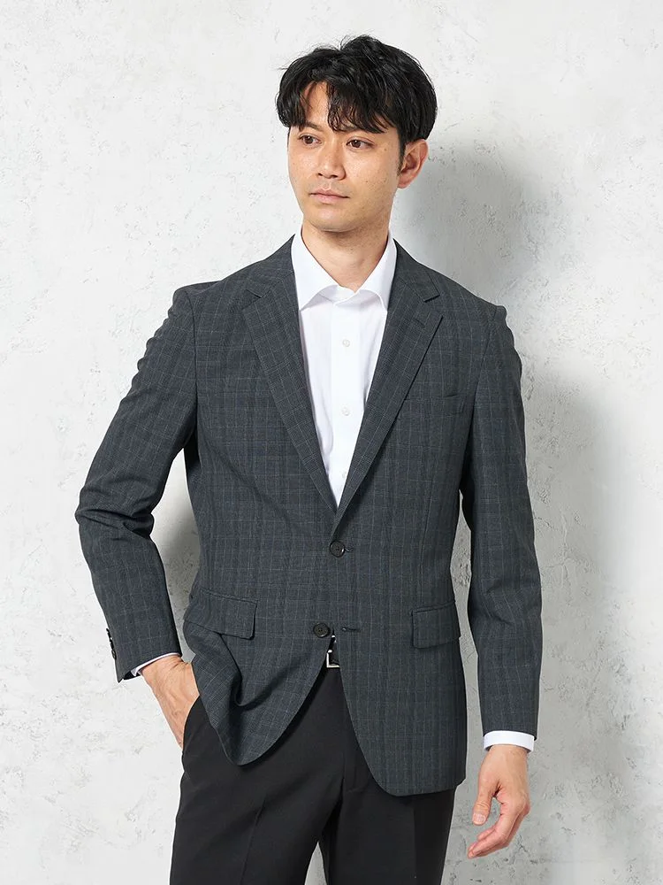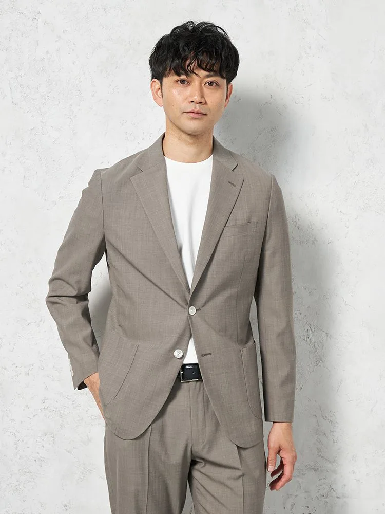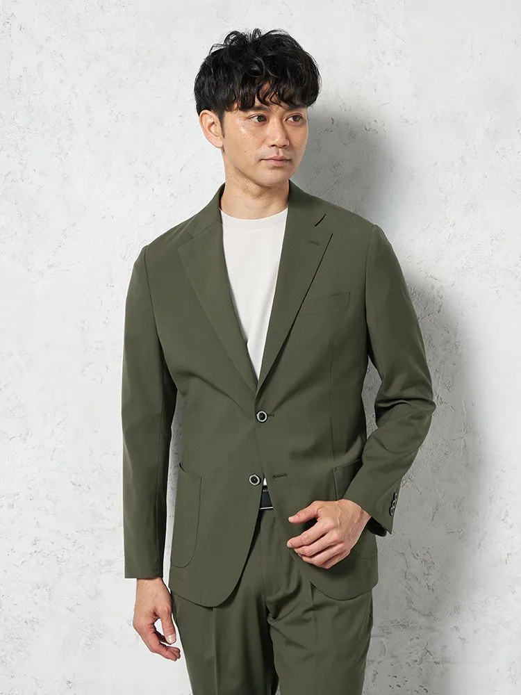 ビジネスにもカジュアルシーンにも活躍し、同生地のパンツを合わせるとセットアップスーツとしても楽しめます。