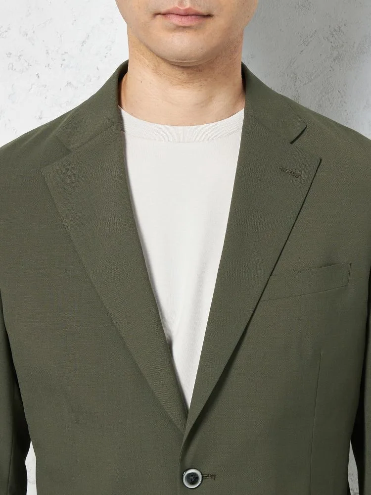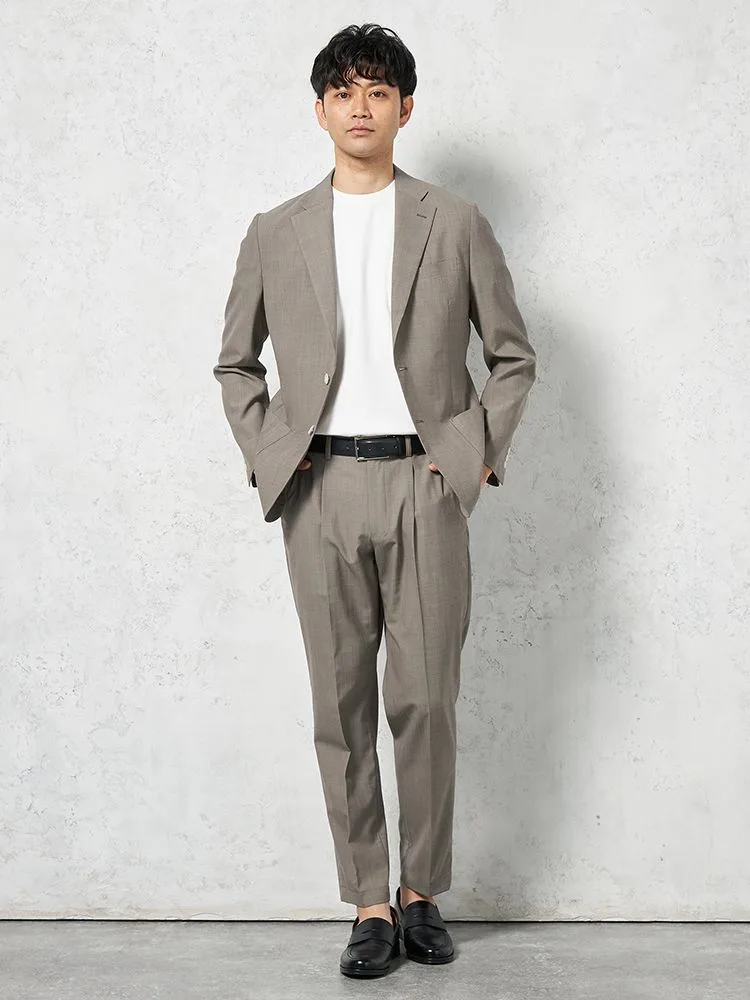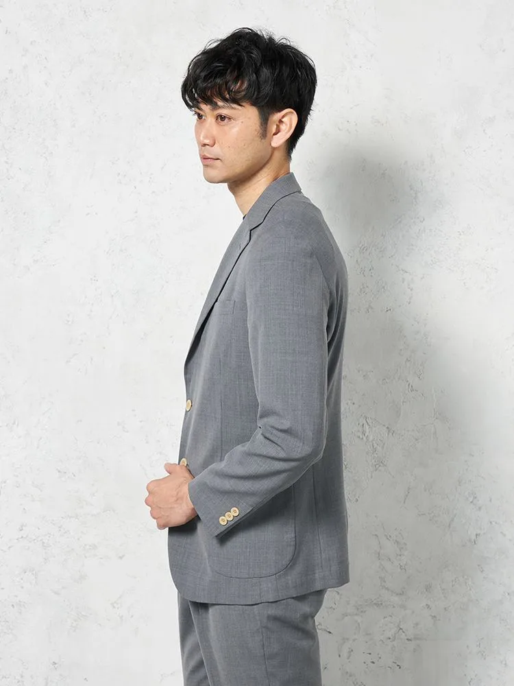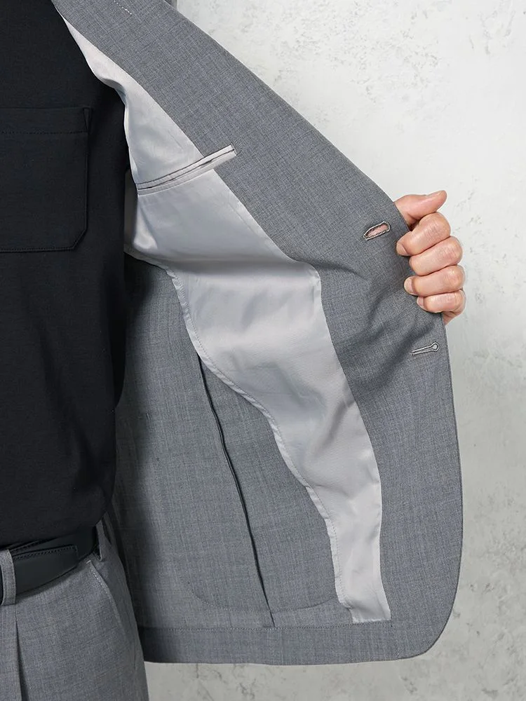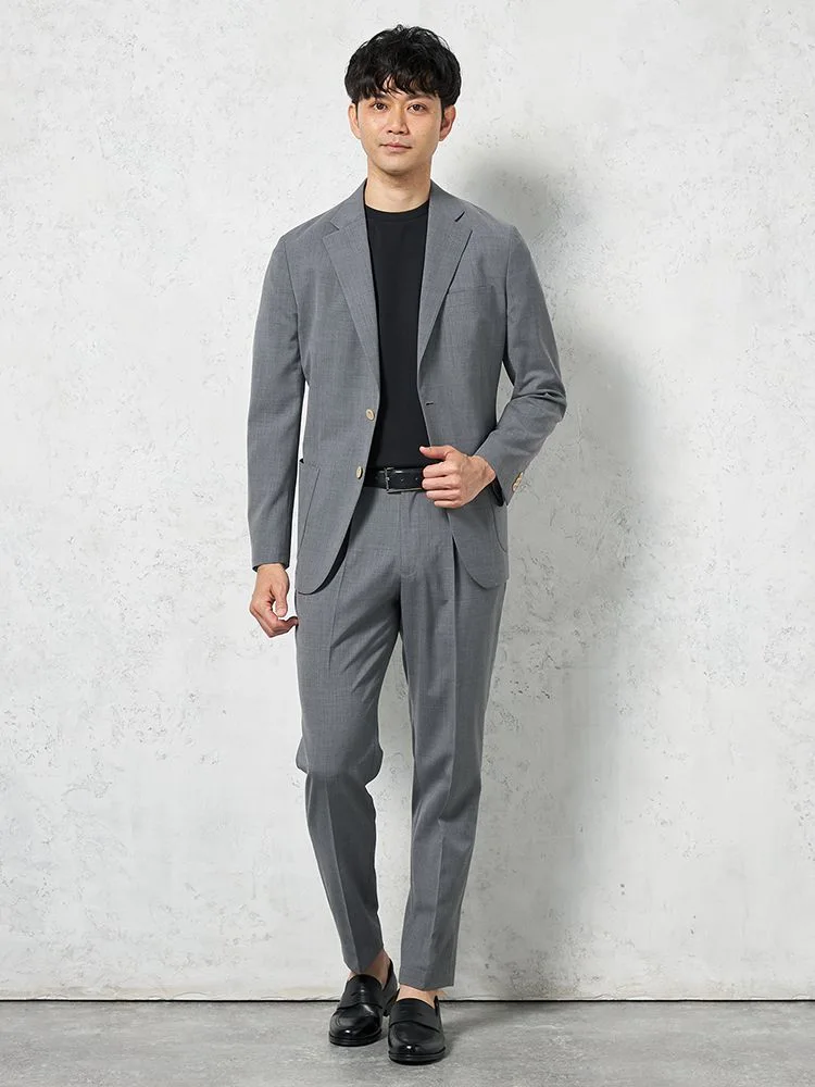 ビジネスにもカジュアルシーンにも活躍し、同生地のパンツを合わせるとセットアップスーツとしても楽しめます。