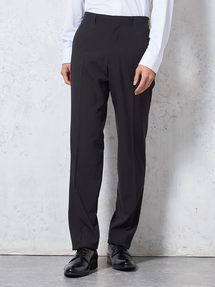 パンツの腰回りに生地の折り込みがなく、スッキリとしたシルエットを実現します。シンプルで洗練された印象を与え、すっきりとした着こなしが可能です。