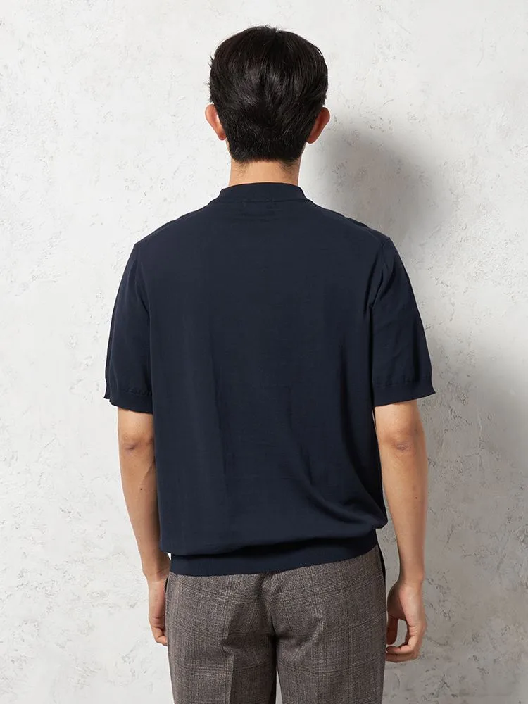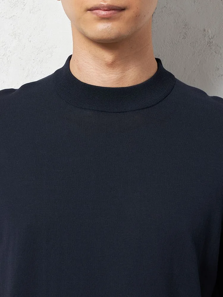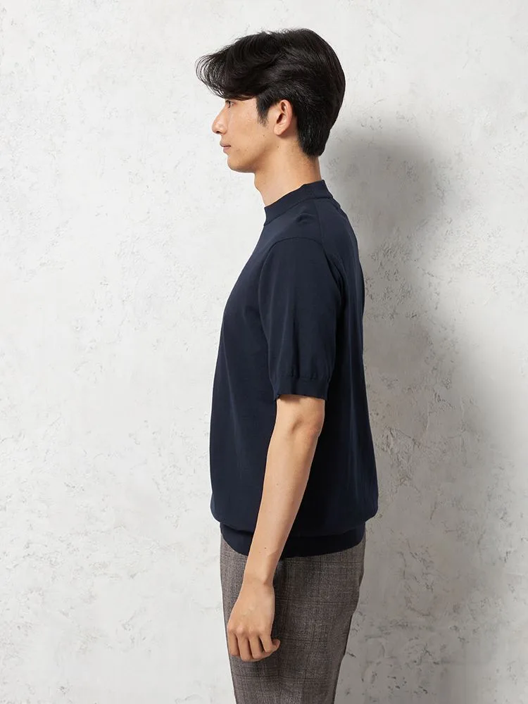 【綿100%】半袖モックネックニットTシャツカジュアルインナー無地リッケンバッカー春夏