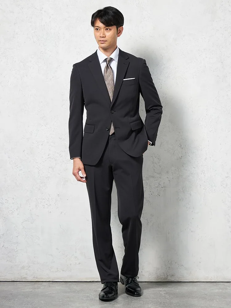 【CassetteCross】スーツ2つボタン上下ウォッシャブルニット素材無地nero秋冬