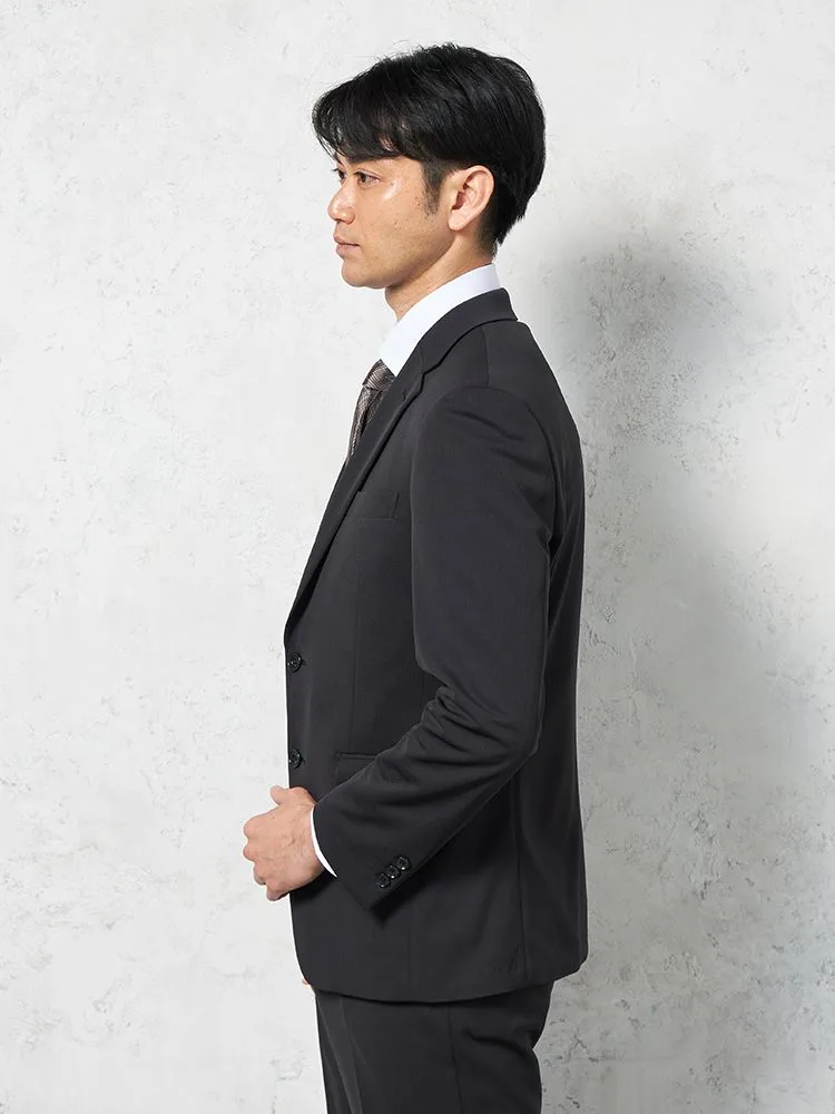 切り込みが1本のセンターベントデザインです。細身でスッキリとしたシルエットが特徴で、快適な着心地を提供します